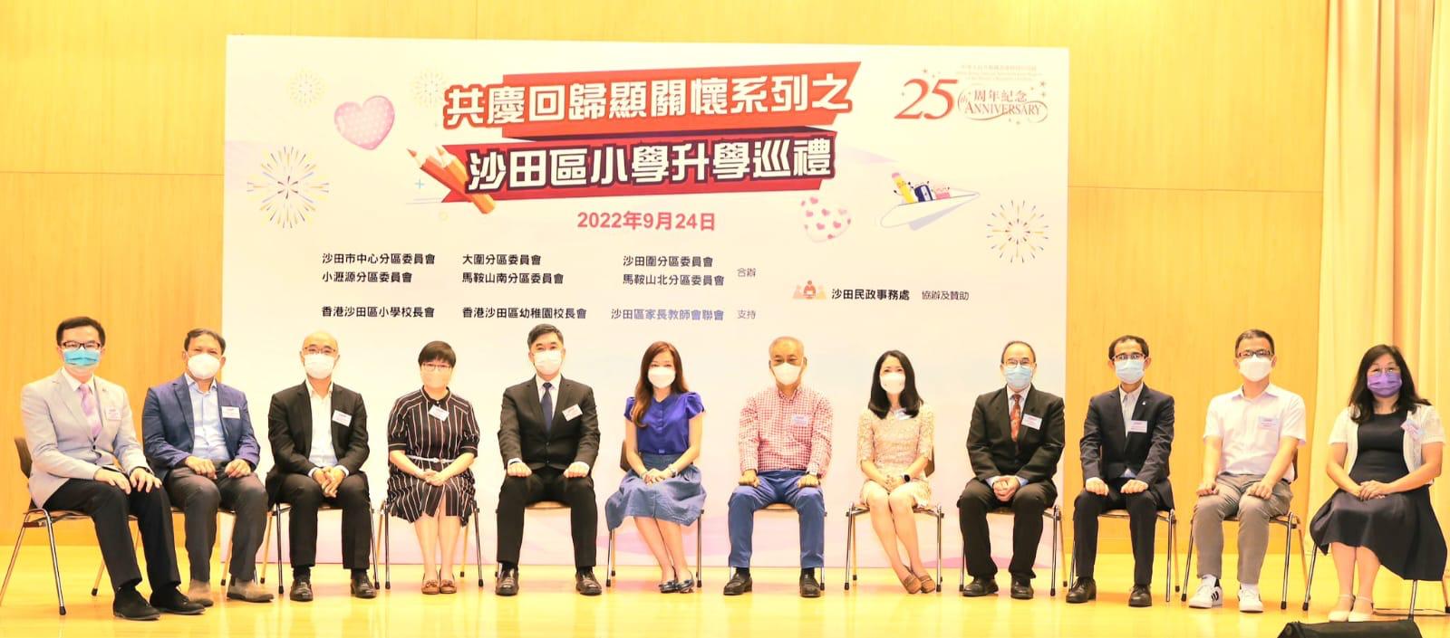 沙田民政事務處今日(24日)聯同沙田區六個分區委員會,於香港專業教育學院(沙田)舉行了「共慶回歸顯關懷系列之沙田區小學升學巡禮」。沙田民政事務專員柯家樂與沙田區慶祝香港特別行政區成立25周年諮詢委員會會長莫錦貴、沙田警區指揮官梁子健、沙田區小學校長會主席蔡曼筠、沙田區幼稚園校長會副主席周美燕、沙田區家長教師會聯會會長梁福厚及六個分區會主席或副主席一同為活動主禮, 場面熱鬧。大會特別在活動開始前奏唱國歌,讓參加者感受香港回歸祖國25周年的喜悅。
