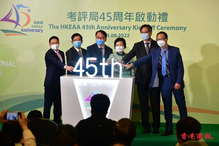 香港考試及評核局(考評局)今年欣逢45周年,考評局今日(28日)舉行45周年啟動禮,由政務司司長陳國基主禮,聯同教育局局長蔡若蓮,中聯辦教育科技部副部長徐凱,以及考評局主席容永祺等,共同回顧考評局多年來的發展與成就,並為周年活動揭開序幕。