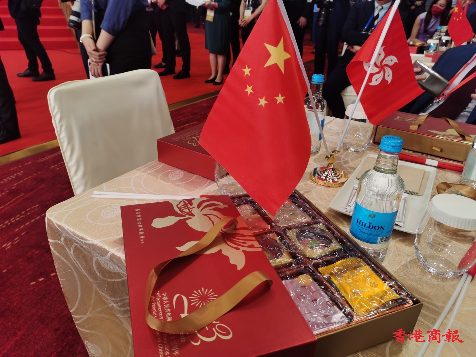 升旗儀式結束後,特區政府在會展舉行慶祝酒會。