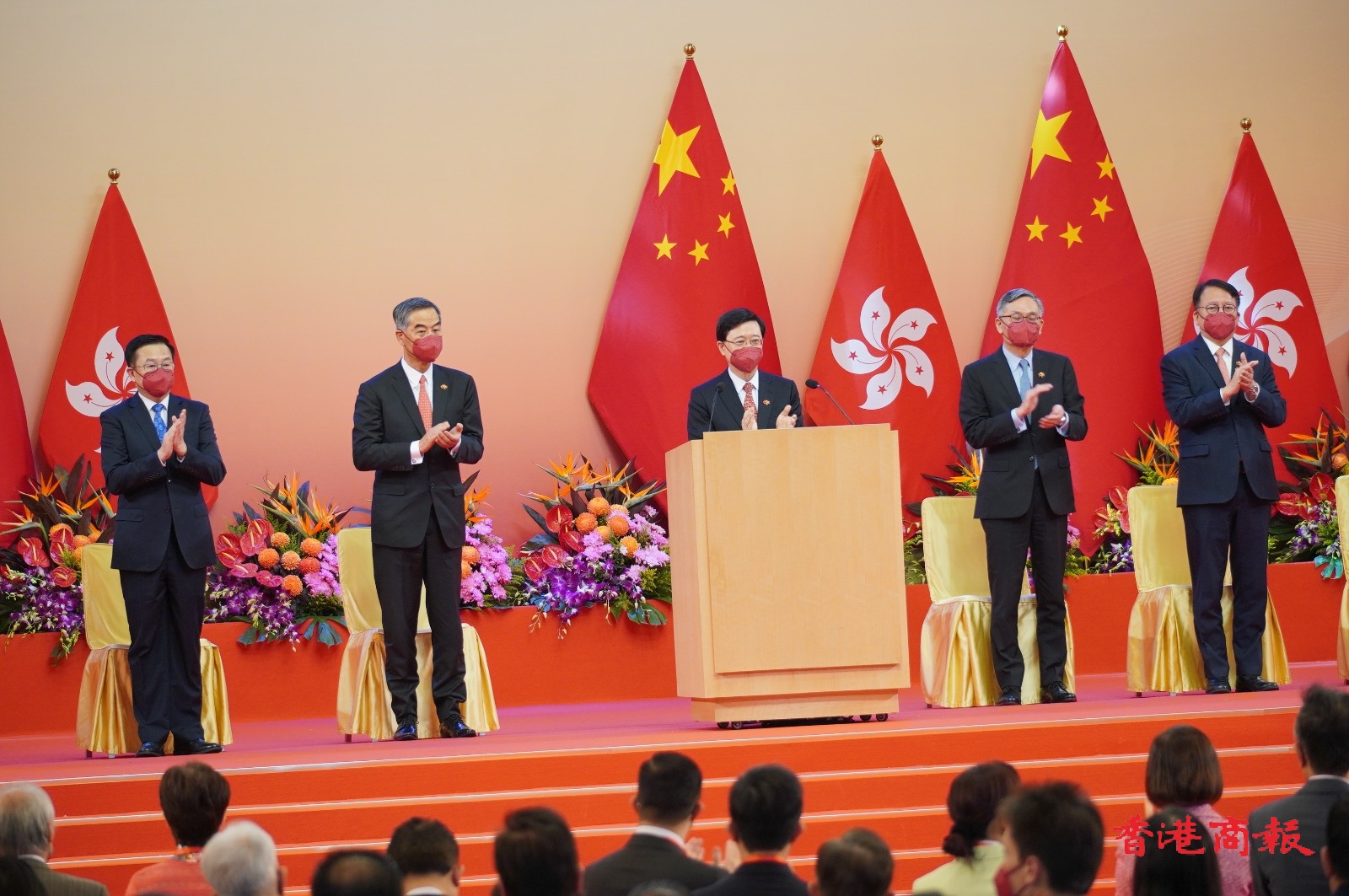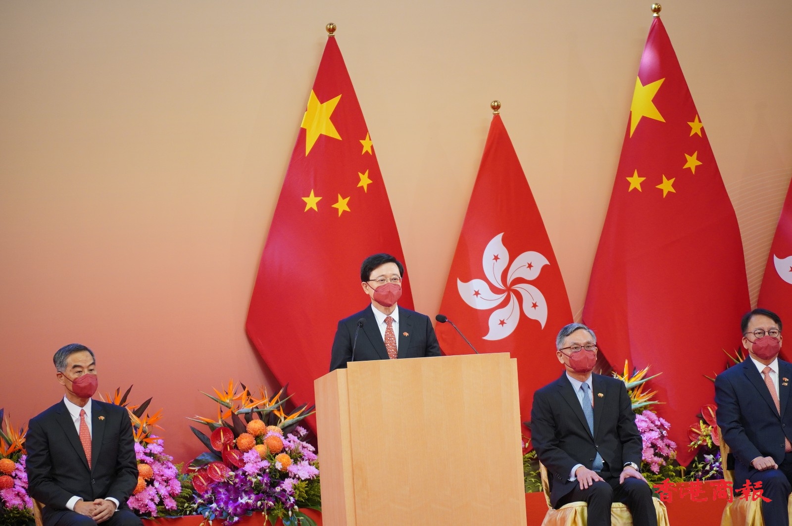 李家超續指,今年是香港回歸祖國25周年,四分之一世紀以來,香港取得驕人成績,雖然當中經歷了不同挑戰和考驗,但是總能轉為危機,遇強越強,主要原因是「一國兩制」為香港長期繁榮穩定提供了最佳制度保障。香港不論在開拓機遇,以至抵禦衝擊的每一個關鍵時刻,總有祖國作為堅強後盾。過去兩年,中央頒布實施《香港國安法》,完善選舉制度,落實「愛國者治港」,令香港由亂到治。今年初,香港面對嚴峻疫情,中央全力支持香港抗疫,內地專家組、醫療隊火速赴港,鐵路、水路直送物資,7日建成方艙醫院,使疫情最終受控。「這些護港情切的『中國速度』以及民族關懷,每個香港人都歷歷在目,不會忘記。」