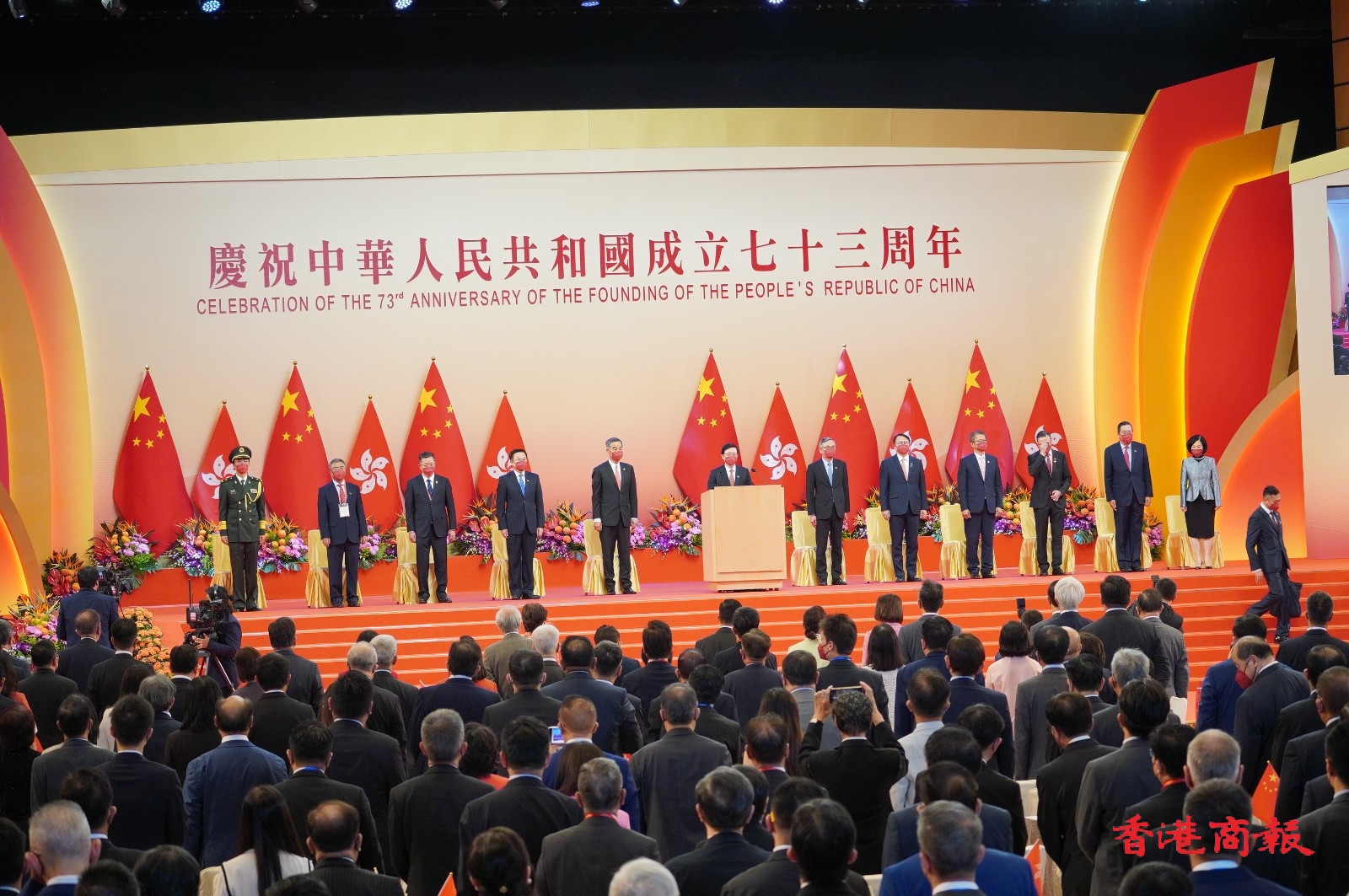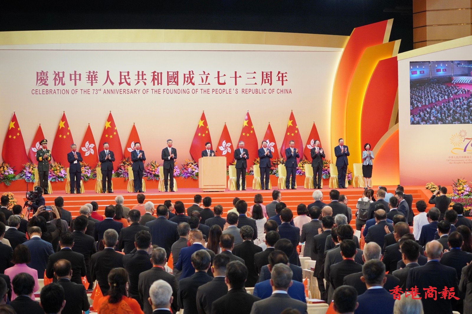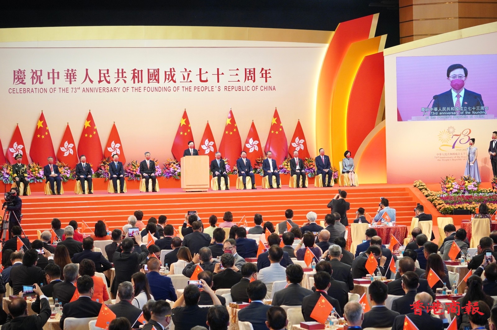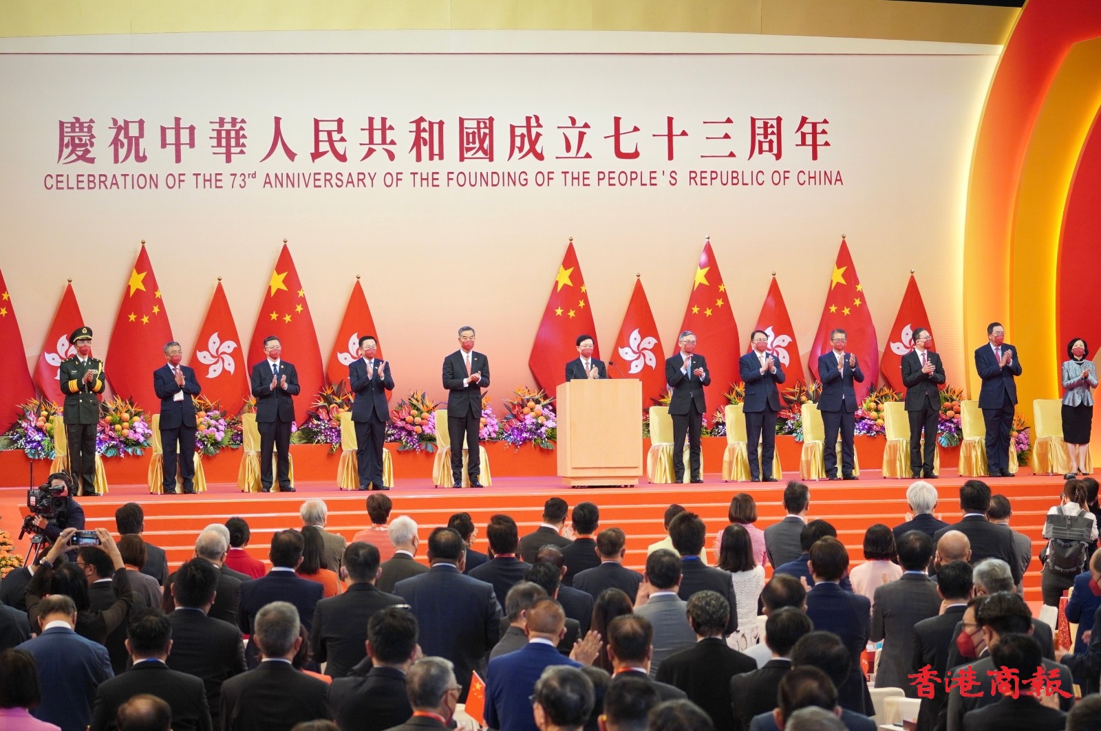 今天我非常高興,首次以第六任行政長官的身份,出席香港特區政府舉辦的國慶酒會,與大家聚首一堂,慶祝中華人民共和國成立七十三周年。