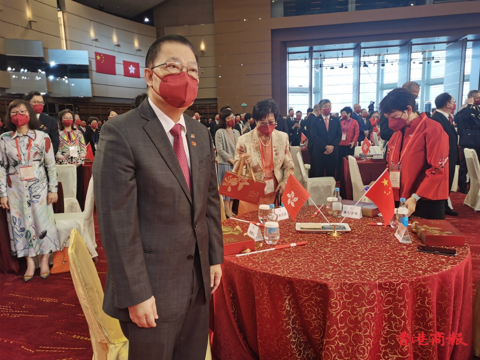 李家超最後祝願祖國富強昌盛,香港繁榮穩定,東方之珠繼續發亮發光,為實現中華民族偉大復興做出貢獻。