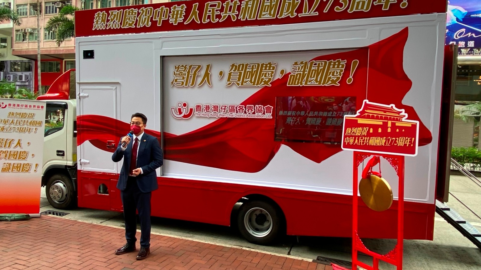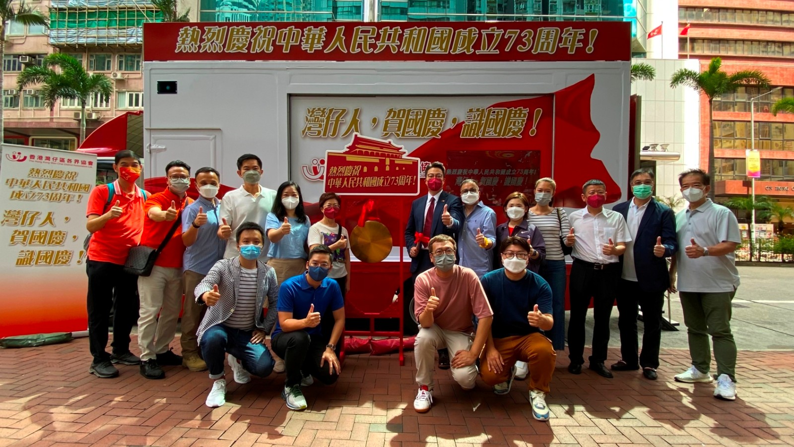 「灣仔人,賀國慶,識國慶!」宣傳車巡遊活動今日(1日)於灣仔舉行,大會並於軒尼詩道鬧市舉行啟動儀式,出席儀式的嘉賓包括:創新科技及工業局局長政治助理廖添誠、香港灣仔區各界協會副主席孫日孝、周錦威、閻偉寧、伍凱誠、林源森;灣仔建設連線成員:灣仔區議會副主席林偉文、李文龍、周潔冰、吳澤森、黃守東、莫繡安、李文偉及宋芝齡。