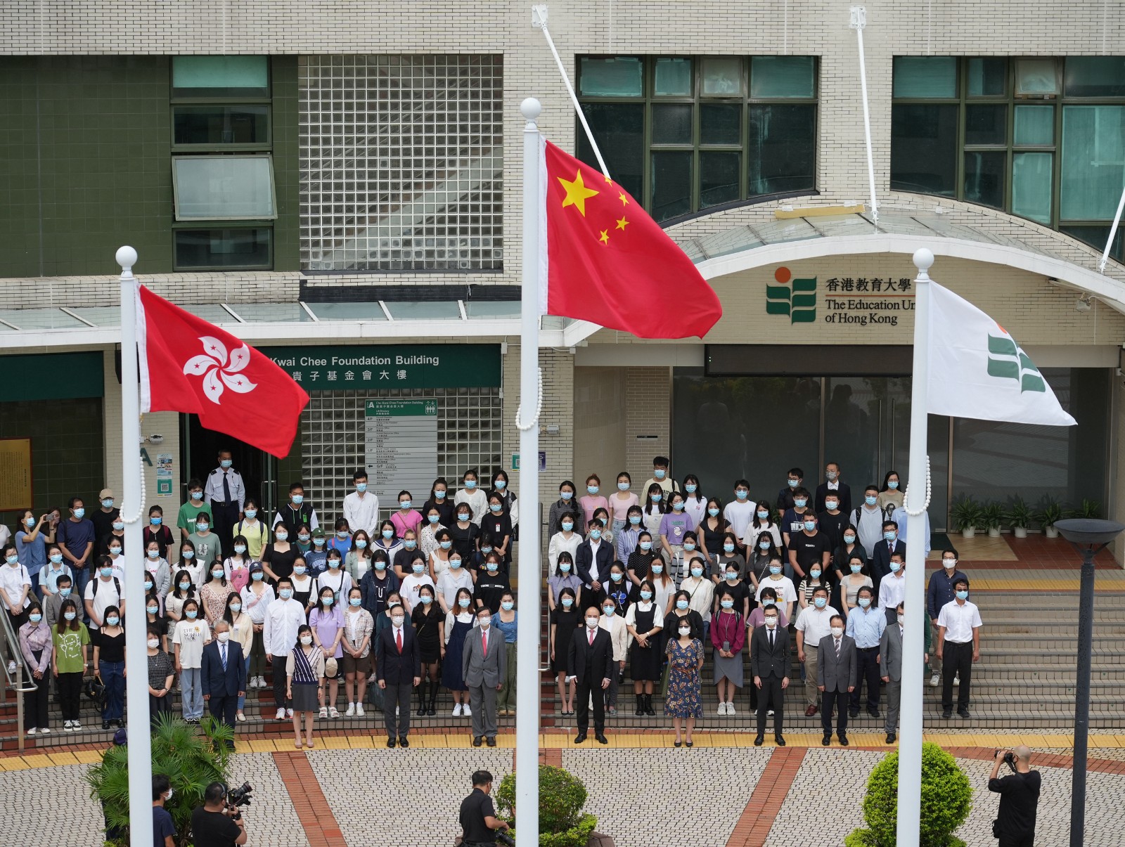 頂圖:香港教育大學(教大)今早(10月1日)在大埔校園舉行升旗儀式。