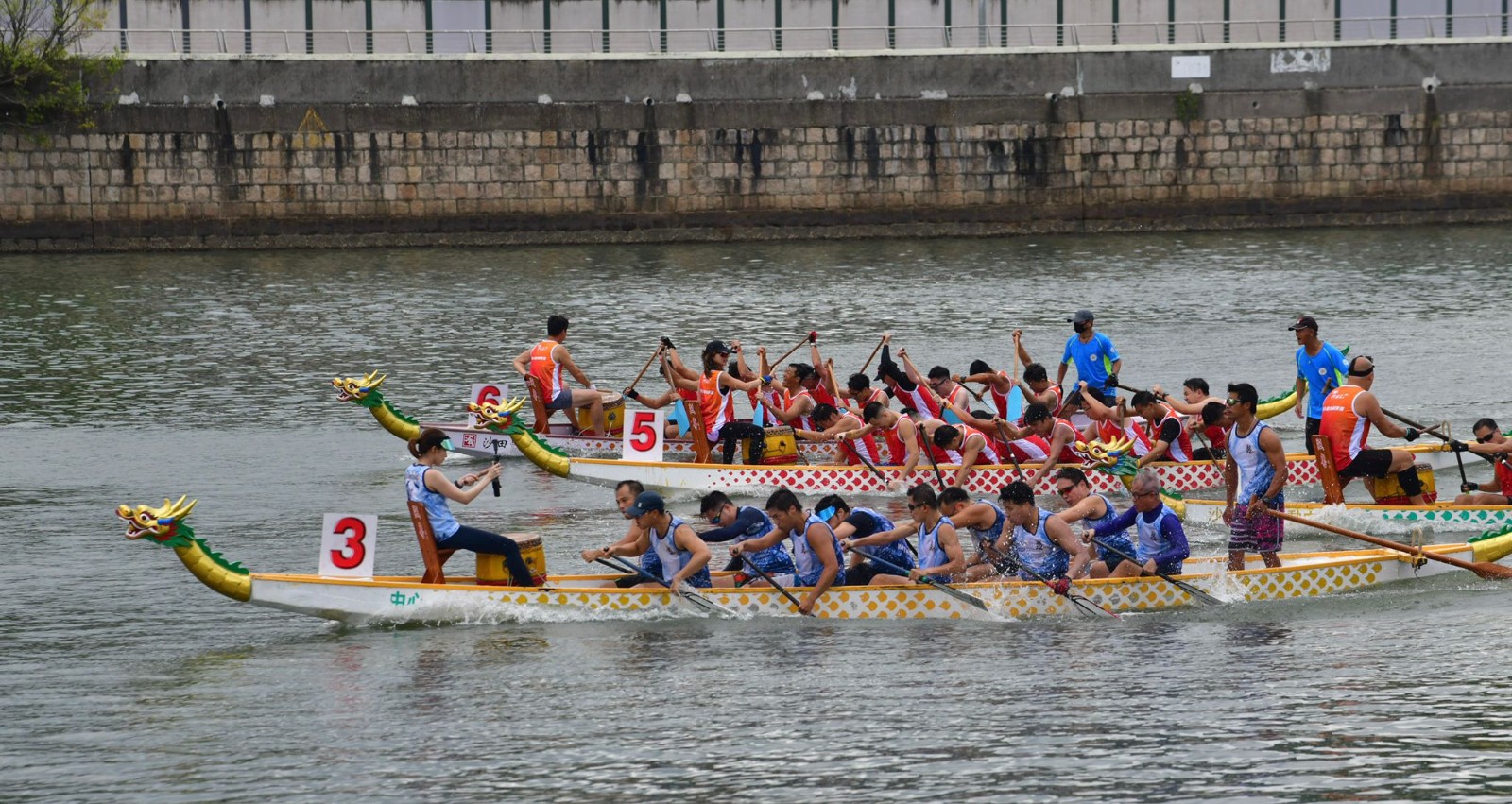 中國海外在7月至10月邀請40名香港青少年與逾100位企業義工,共同參與陸上龍舟體驗、龍舟培訓、龍舟比賽等一系列活動,並於今日(1日)舉行首屆愛心龍舟同樂賽。(崔俊良攝)