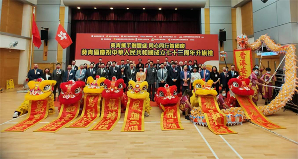 活動由葵青發展義工團、葵青工商業聯會、香港工商總會(葵青分會)、葵青青年團合辦,葵青民政事務處協辦,以升旗禮揭開序幕,葵青民政事務專員鄧顯權太平紳士、立法會議員陳恒鑌BBS太平紳士、新社聯葵青地區委員會主席潘志成MH、葵青發展義工團主席葉長春MH先後致辭,表達對祖國生日的喜悅,並祝賀國家繼續繁榮昌盛、欣欣向榮,推動中華民族偉大復興新征程,實現國家第二個一百年的奮鬥目標!