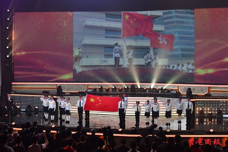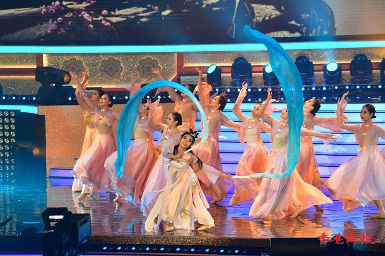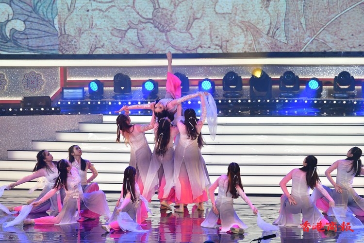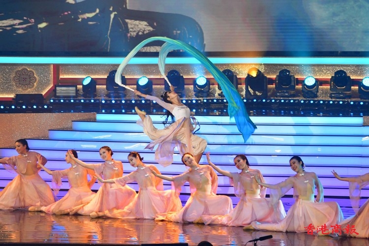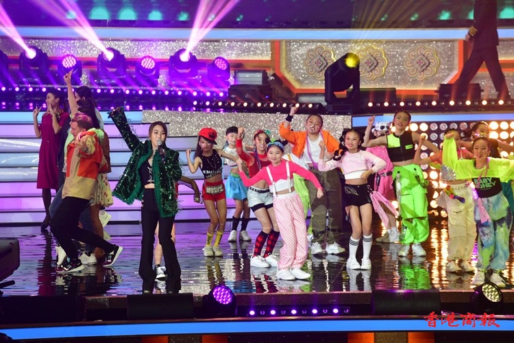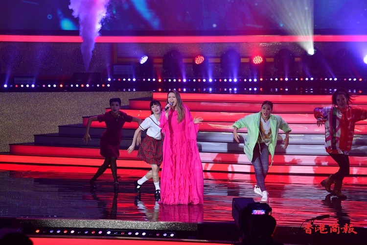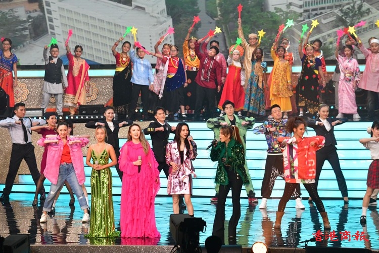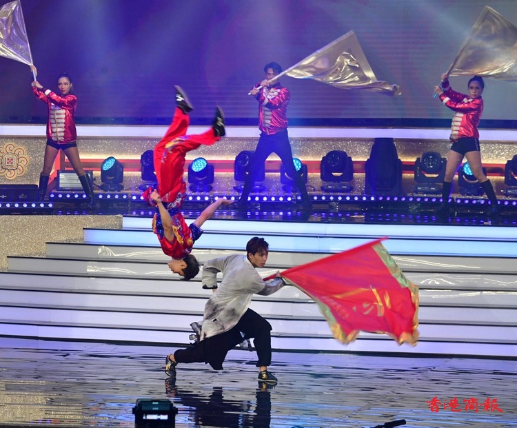 第一個環節「歡欣共慶 齊心向《前》」由本港多位歌星菊梓喬、JW王灝兒、鄭融等聯同多位學生表演音樂劇;之後是「中國航天 伴我啟航」由香港太空館少年太空人體驗營多位學員和舞蹈學校學生表演中國舞蹈,演繹中國神話傳說,展現祖國偉大航天故事;「體壇榮譽 為國爭光」由前國家女子排球隊隊長孫玥、聯同港隊運動員,香港學界運動員作動感表演,展現中國和香港運動員在國際體壇上屢創佳績,發光發亮;「樂韻悠揚 歌頌中華」由香港青年歌手炎明熹、姚焯菲等、《聲夢傳奇》學員以及多個合唱團以快閃形式合唱,寓意青少年茁壯成長;「演藝薈萃 文化傳承」由粵劇名伶林穎施、王志良以現代舞蹈及舞台效果演繹唐滌生戲寶,讓人耳目一新;「中華兒女 紀律精英」由警察樂隊聯同多位男藝員豪情獻唱,展現紀律精英的非凡氣魄,令全場氣氛高漲;「港樂繞樑 國慶高歌」由呂方、蘇永康獻唱經典金曲,膾灸人口令觀眾全場投入;「歌唱祖國 盛世歡騰」由一眾演出嘉賓與團體同聲獻唱《歌唱祖國》,以歌表達對祖國的熱愛與祝願,為晚會劃上完美句號。(記者:李銘欣 攝影:崔俊良)