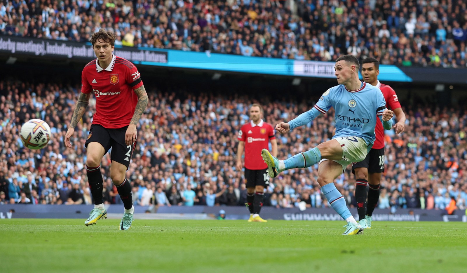 英超聯賽周日(2日)上演曼徹斯特市打吡,衛冕的曼城盡顯王者風範,在上半場已經領先4比0下,最終以6比3大勝曼聯(紅魔)。艾寧夏蘭特、菲爾科頓各自連中三元,成為打吡戰主角。