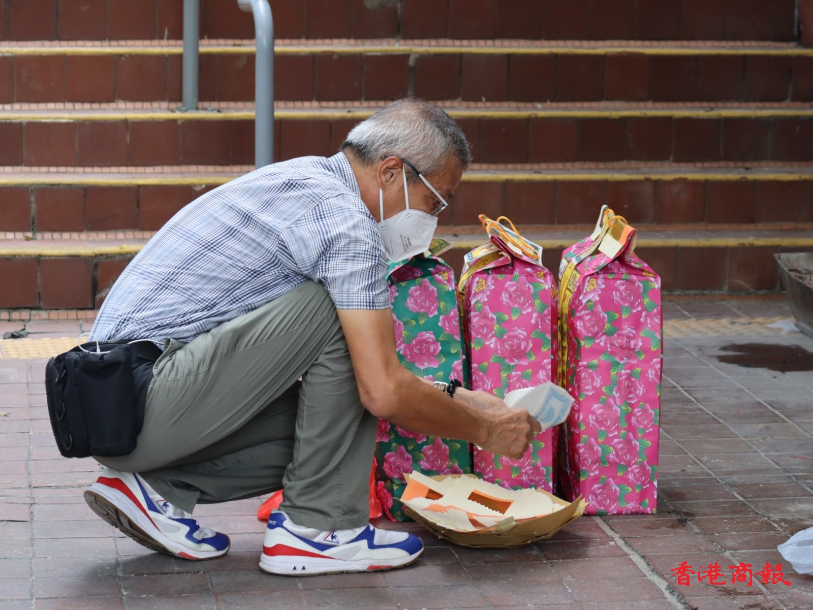 市民盧先生表示,今日前來拜祭大外婆,雖然政府月初派發新一期電子消費劵,但他會視乎需求購買祭品,今年購買鮮花、果品和一般衣紙等,花費100多元,與往年相若。他說,在疫情下,家人已分批拜祭,部分家人會在清明節才掃墓。