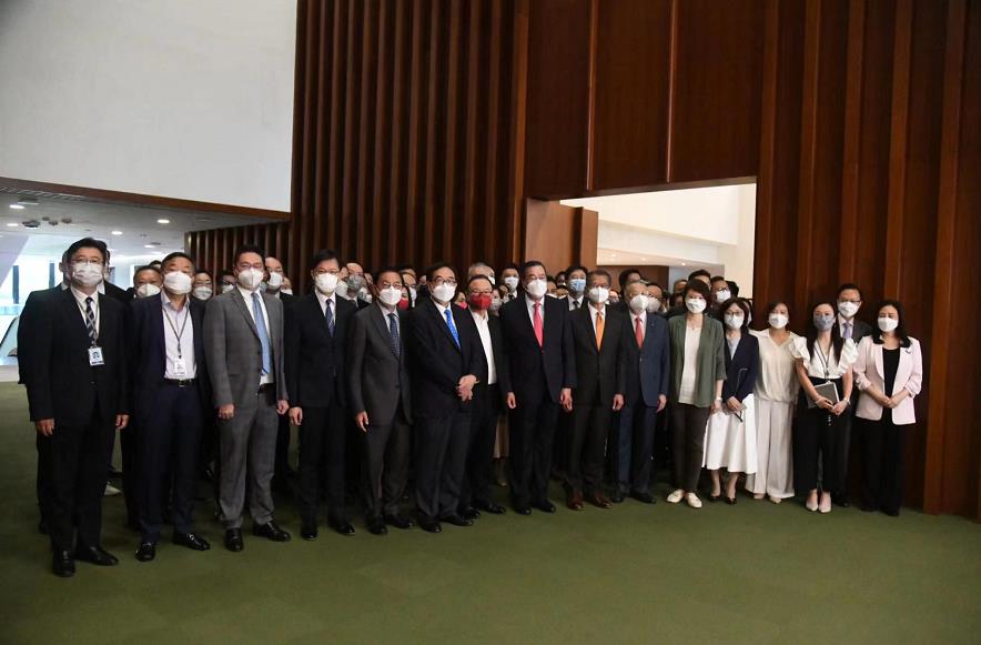 立法會今早(5日)舉行第三次前廳交流會,財政司司長陳茂波率領財政司副司長黃偉綸、房屋局局長何永賢、發展局局長甯漢豪等多名官員出席,立法會主席梁君彥亦有到場。今次交流會主要聚焦六大議題,包括金融服務、土地供應及發展、房屋供應、運輸及物流、經濟發展以及創新科技。