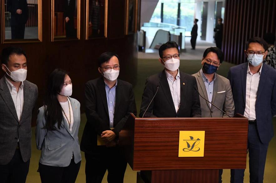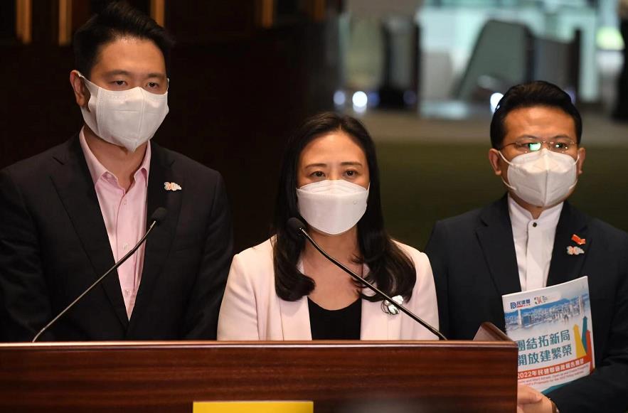 民建聯立法會議員葛珮帆(中)等議員會見傳媒。 蔡啟文攝