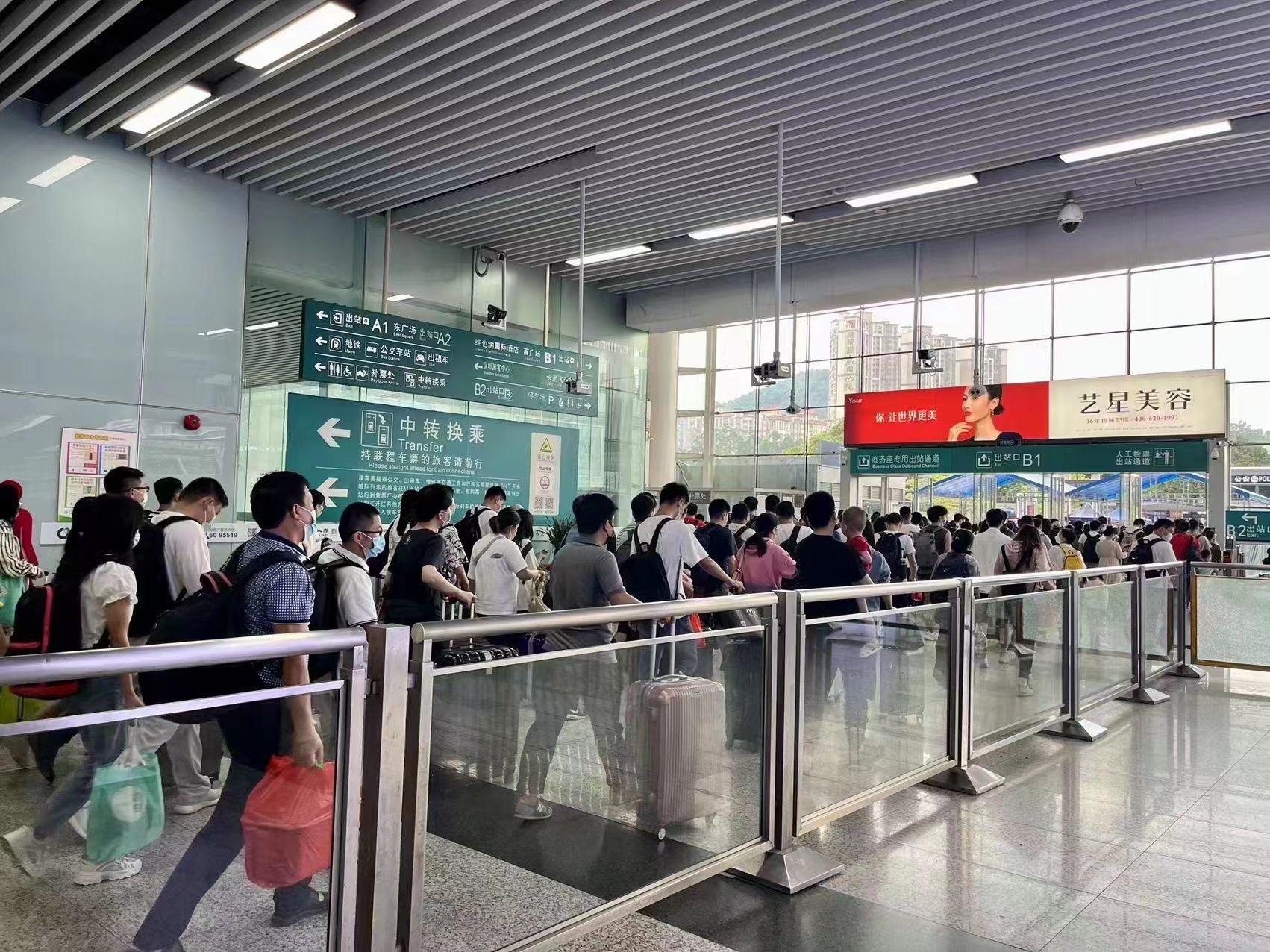 今年國慶假期鐵路旅客運輸整體平穩,節後客流主要以省內中短途旅遊返程客流為主,探親流為輔。針對客流特點,深圳鐵路各站科學鋪畫運行圖,不斷優化運輸組織,實施「一日一圖」,精準投放運力,深圳站累計開行列車797對,深圳北站累計開行動車組列車2747.5對。