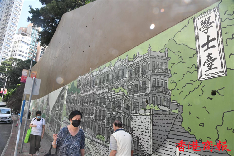位於堅尼地城石山街的新壁畫近日終於大功告成。新壁畫以「西環七臺」歷史為主題,展現出昔日七臺的建築特色及當時香港生活面貌,七臺包括太白臺、羲皇臺、青蓮臺、桃李臺、學士臺、李寶龍臺和紫蘭臺。「西環七臺」畫功十分細緻,非常適合市民到來欣賞西環地區特色並「打卡」留念。 (攝影部蔡啟文攝)