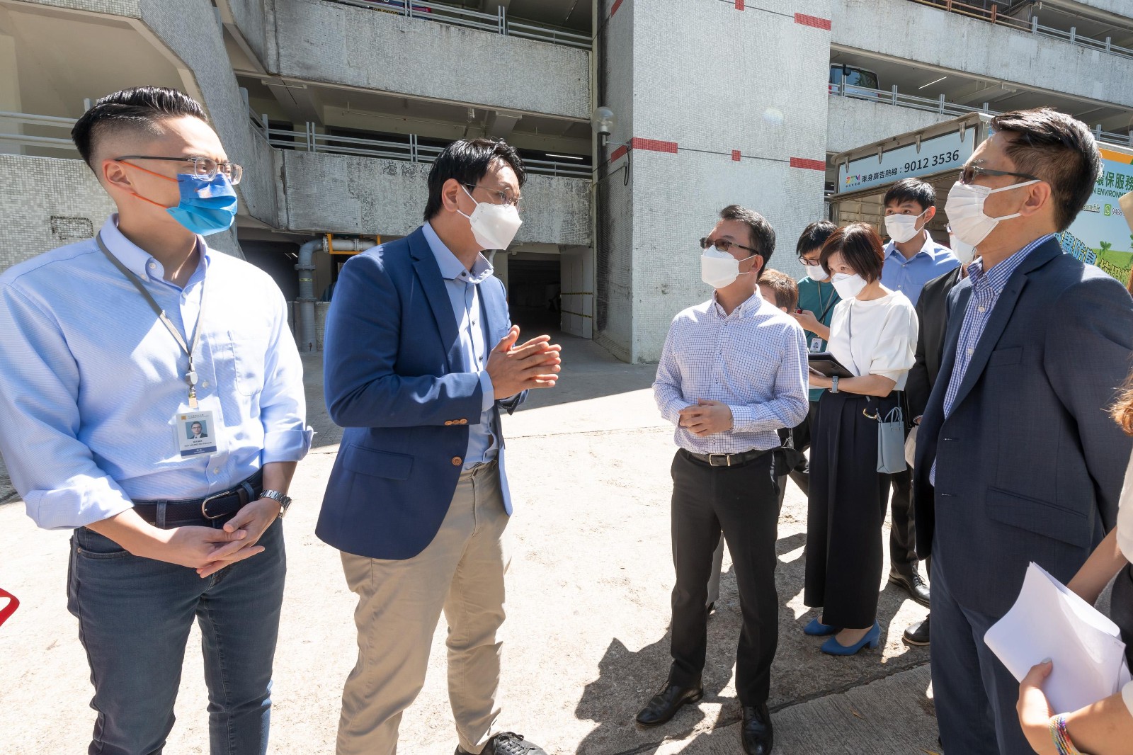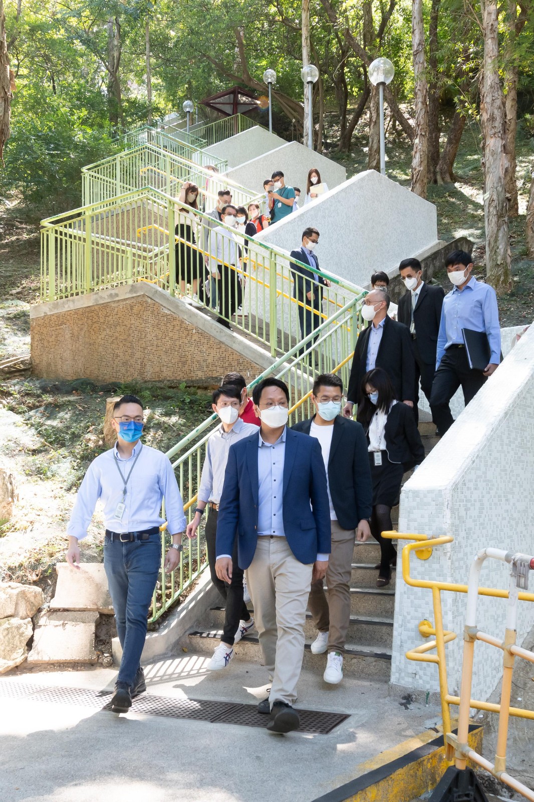 在房屋署、路政署和觀塘民政事務處的代表陪同下,鄧家彪和梁熙視察居民使用長樓梯的情況。期間,他們聽取政府代表簡介在長樓梯附近的行人天橋興建升降機工程的進度,以及就加建更全面的無障礙通道設施與政府代表交換意見。