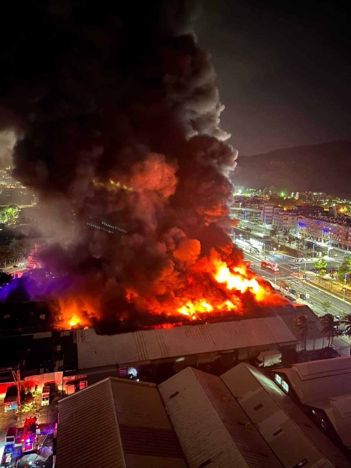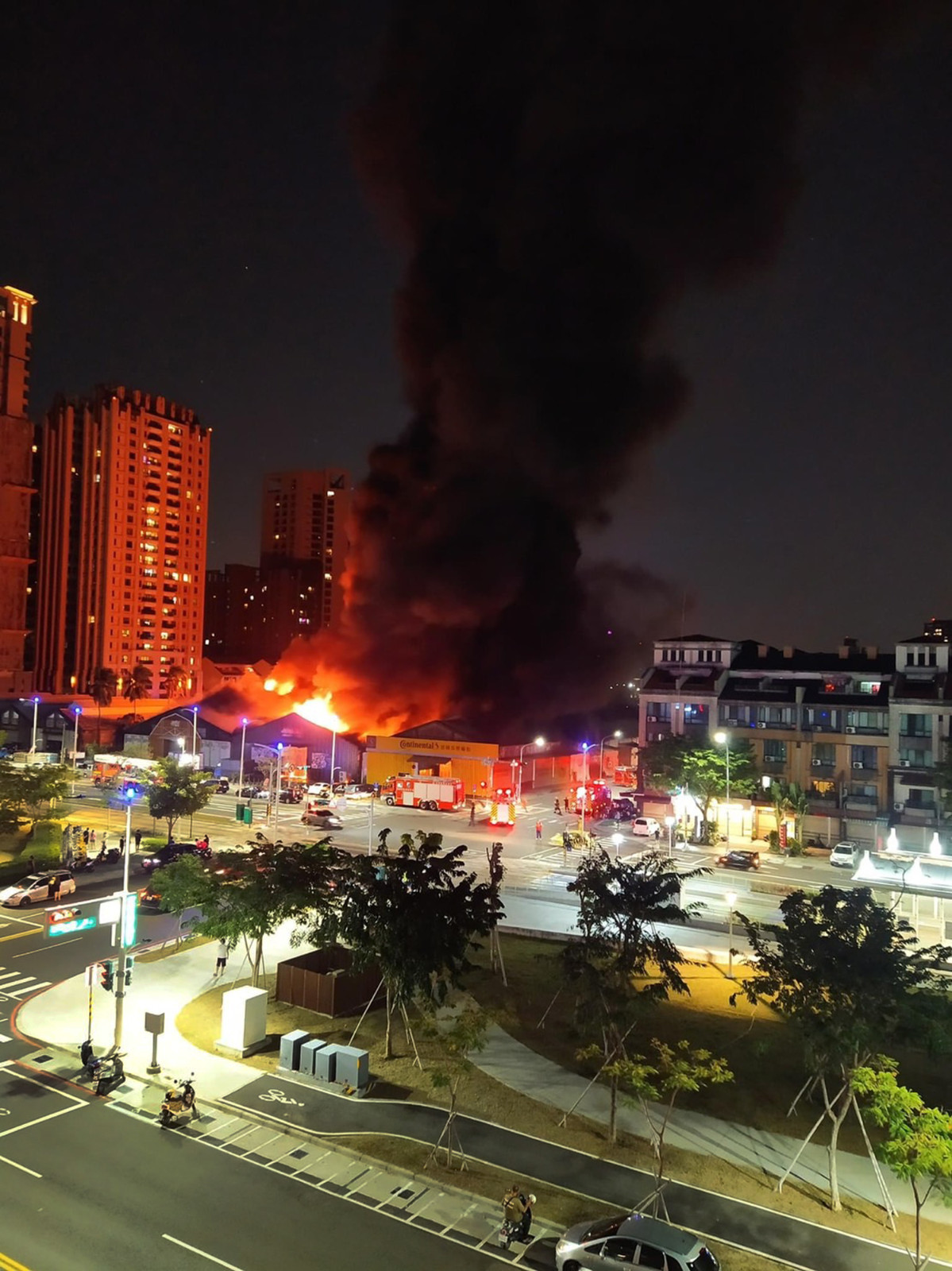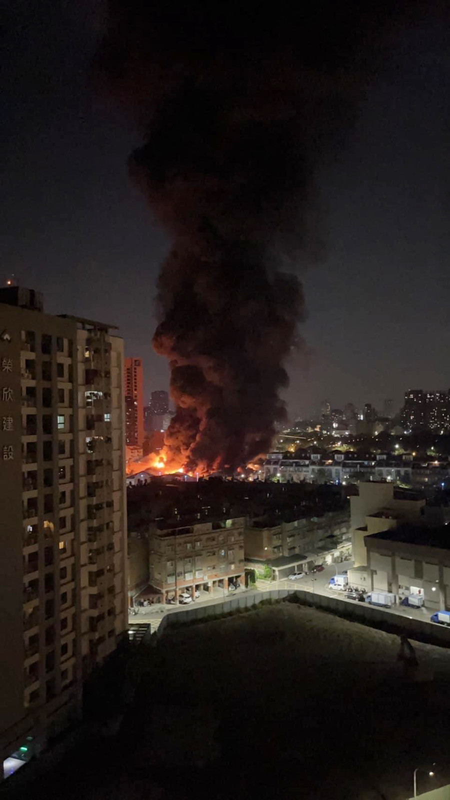 台灣高雄市鼓山區馬卡道路與華安街口一處汽車生活館,10月12日深夜突然發生火警,火勢一路往周邊其他工廠延燒,火光伴隨爆炸聲一路上竄,高雄市消防局調派39車、86人灌救,幸無人受困受傷,詳細起火原因仍待調查。(圖源:中通社)