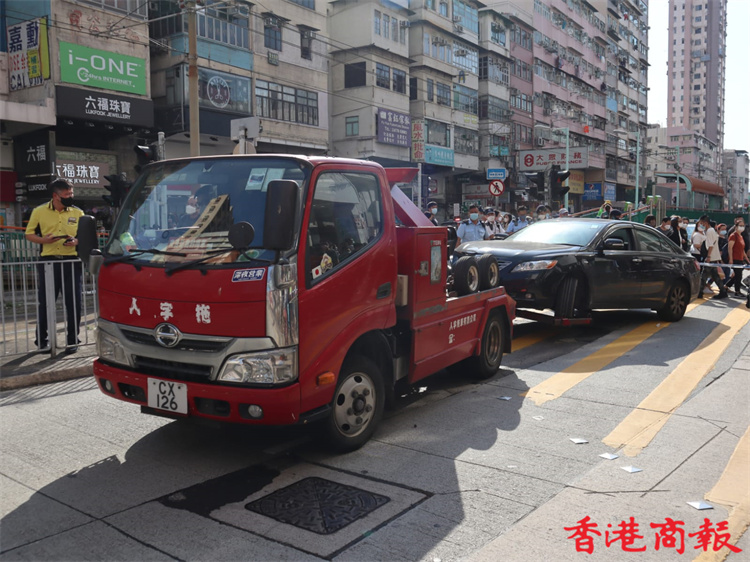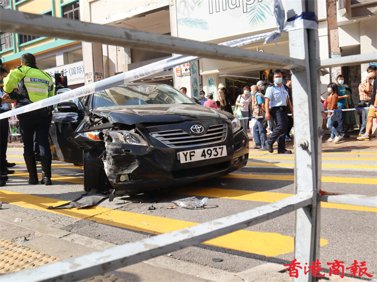 元朗大馬路發生驚險車禍,今午(15日)2時許,一輛黑色私家車被巡警發現形跡可疑,私家車司機未有按指示停車,反加速逃離現場,當私家車駛至青山公路元朗段近康樂路時失控撞欄始停下,幸無波及途人。警員隨即追至截獲男司機,並在車上搜出毒品,隨即拘捕該名男司機涉販毒,檢獲毒品數量仍待檢算,事件引來不少途人圍觀。(圖片:馮瀚文攝)