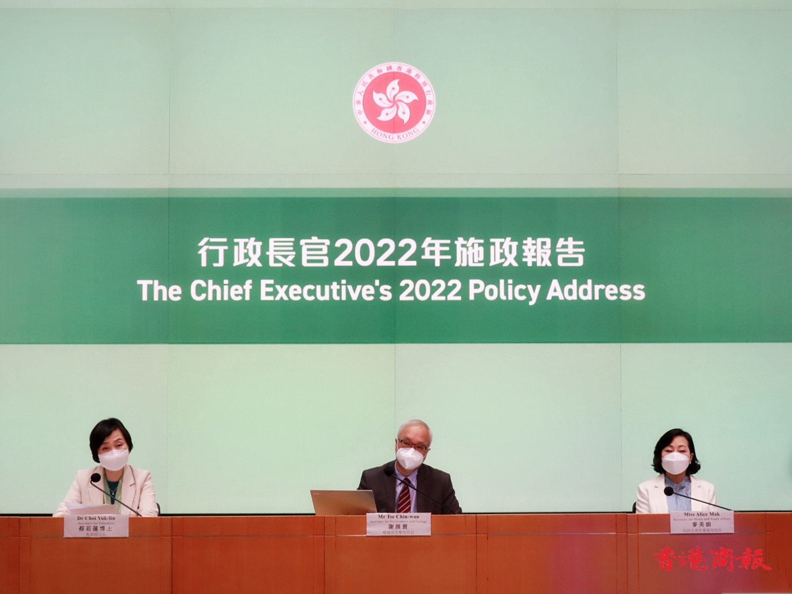 環境及生態局局長謝展寰、教育局局長蔡若蓮和民政及青年事務局局長麥美娟今日(22日)召開記者會,闡述《施政報告》相關措施。謝展寰介紹,由政務司副司長卓永興領導的「地區事項統籌工作組」,目前已打擊超過600個衞生黑點,目標明年底前可消除七成半黑點,同時亦會爭取鼠患黑點減半。