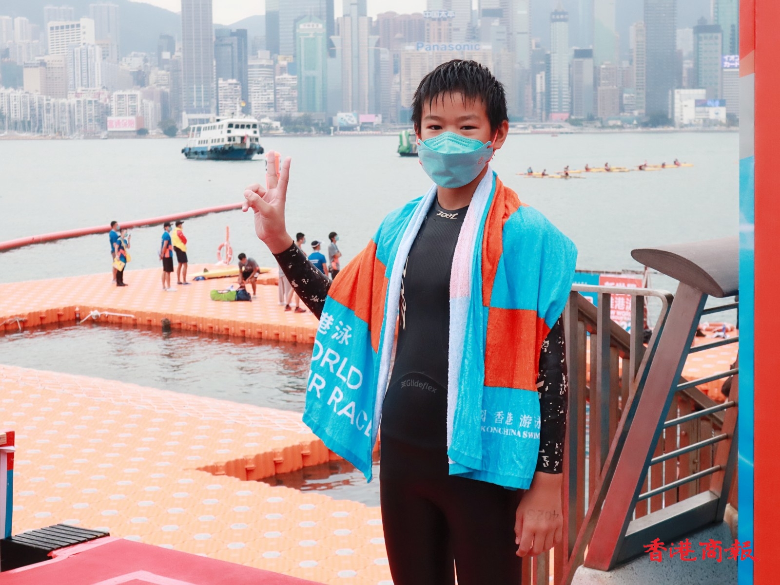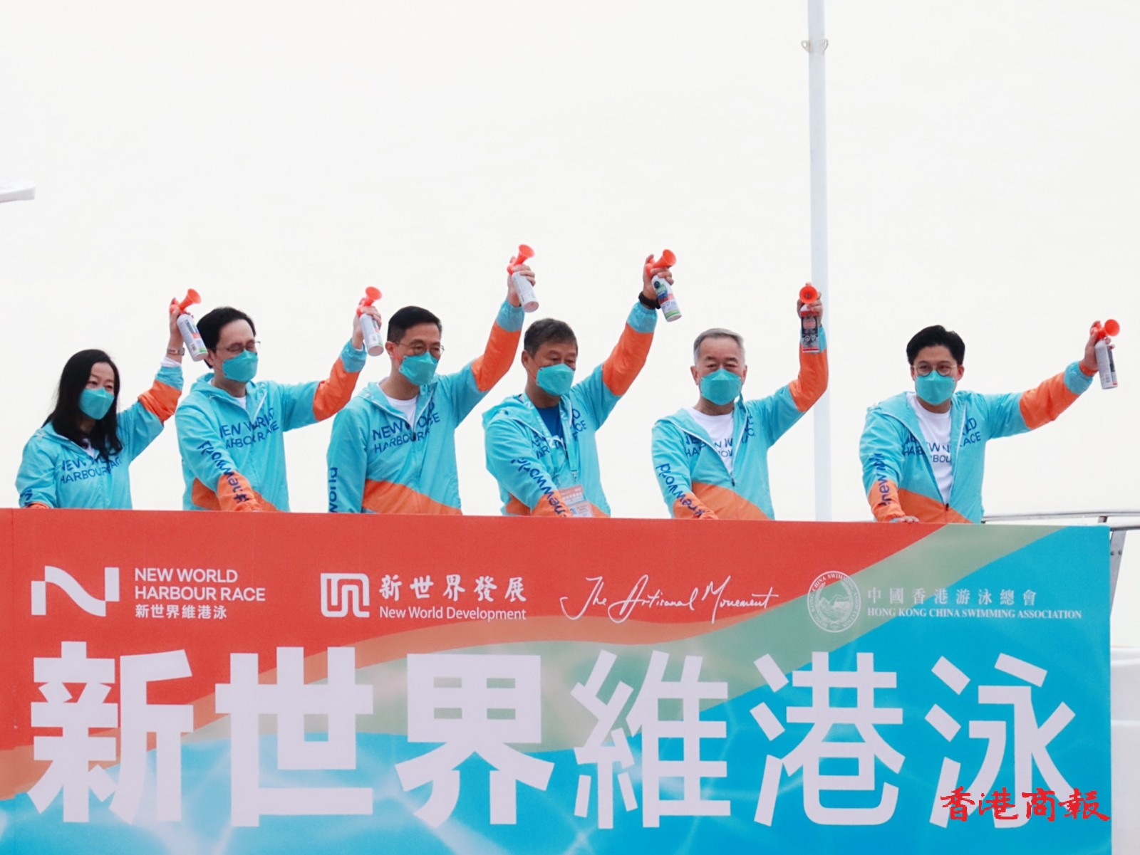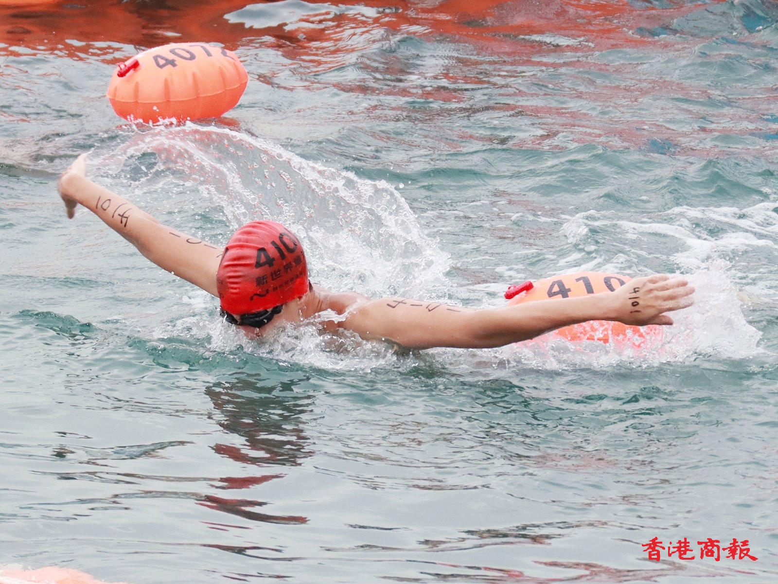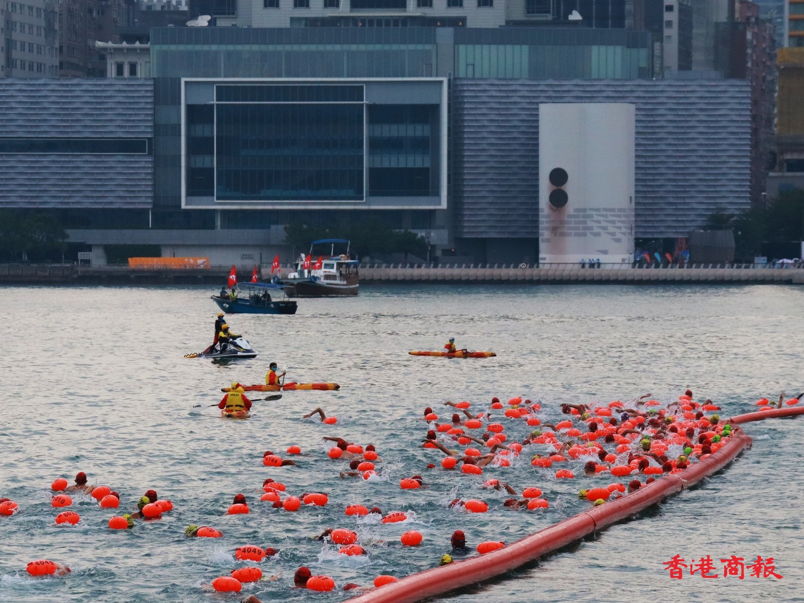 由游泳總會主辦的年度體壇盛事「新世界維港泳」今早(23日)舉行,本屆合共約有1500名泳手參賽。約7時05分,競賽組選手首先出發,男子組冠軍為港隊郭俊希,以大約14分25秒衝線,女子組冠軍則由黃靖琳奪得。