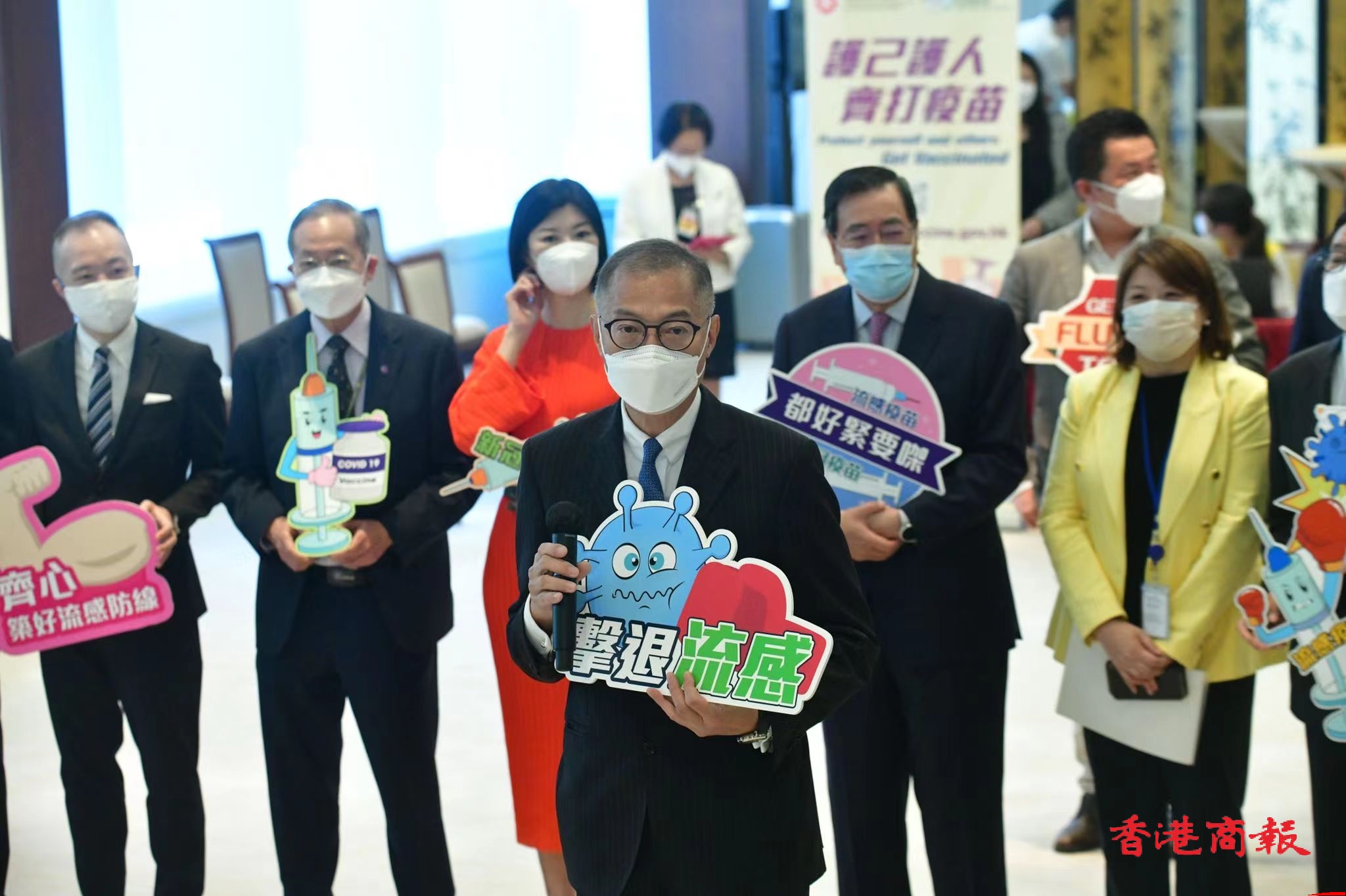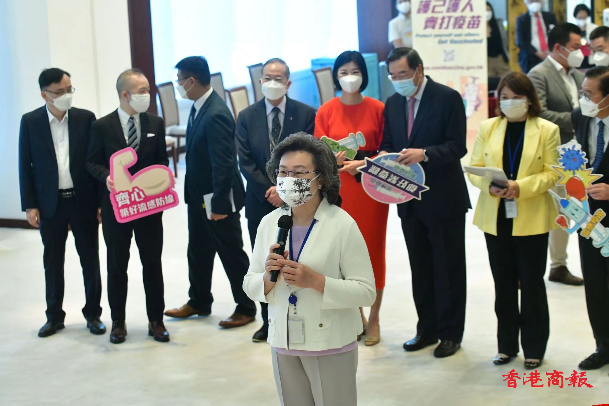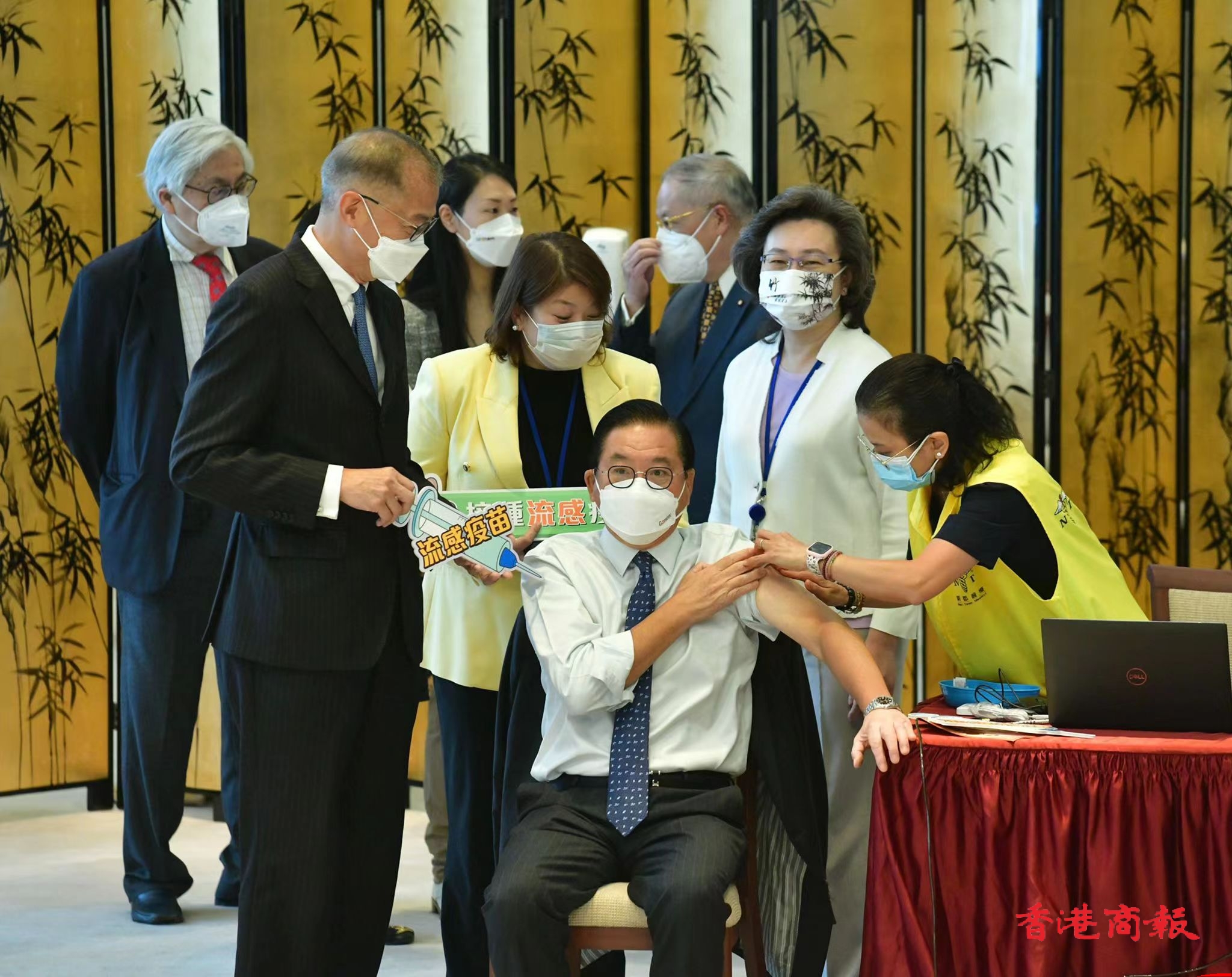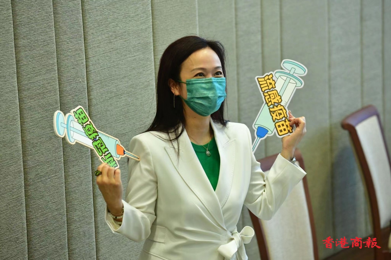 楊何蓓茵表示,今日到場是為議員打氣,許多議員更「兩針齊發」,同時接種流感和新冠疫苗,這為市民做了很好的示範。她指,現時「一老一幼」接種新冠疫苗的比率仍然不理想,希望議員接種疫苗能起示範作用,增加市民打針的信心。