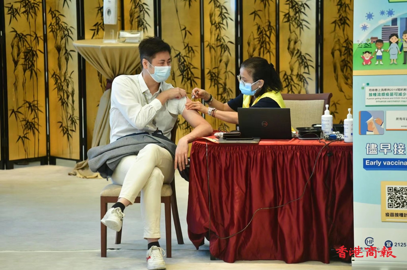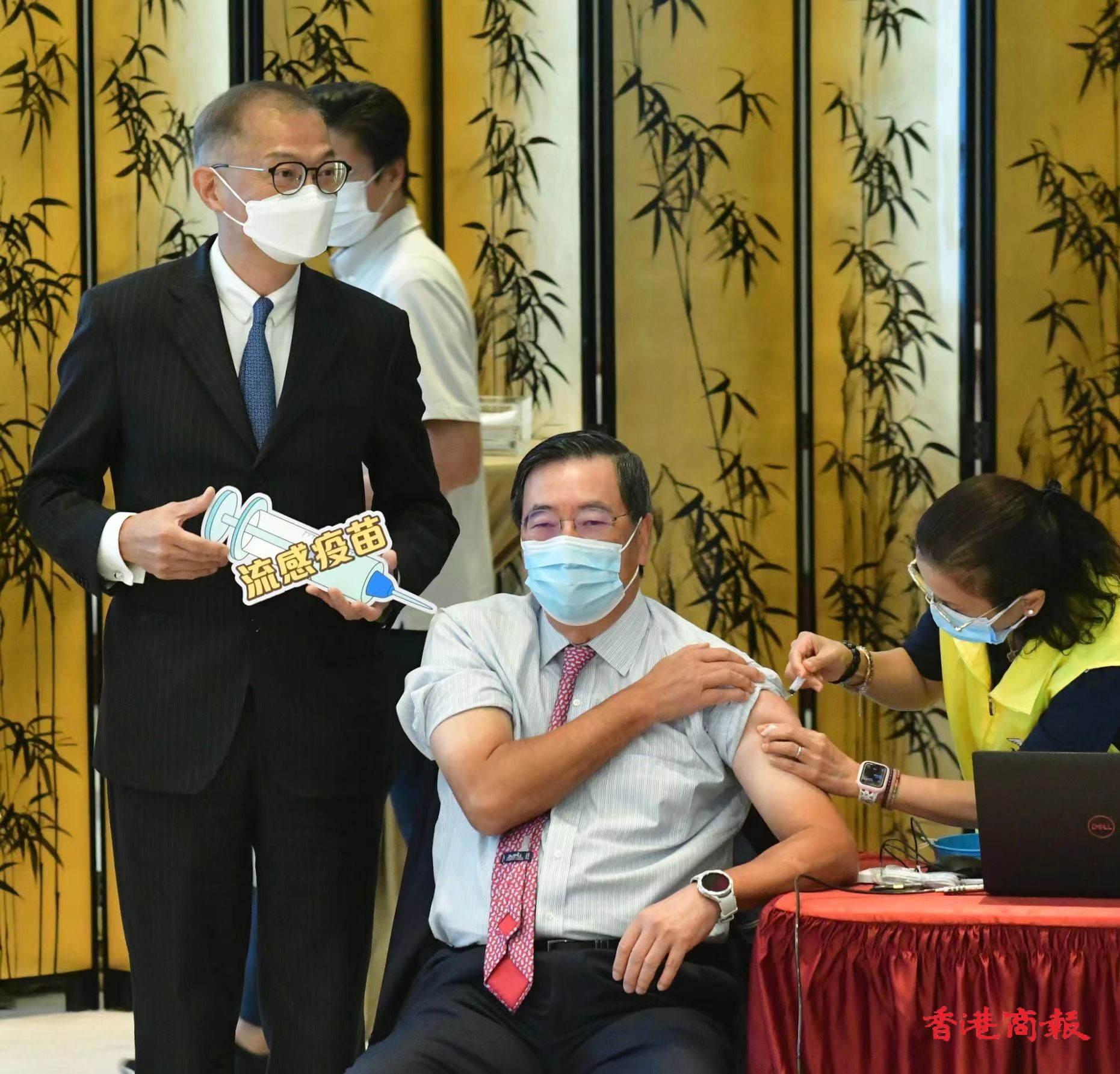 衛生署今日(26日)安排外展隊到立法會綜合大樓宴會廳,為議員和職員接種季節性流感疫苗和新冠疫苗。醫務衛生局局長盧寵茂、公務員事務局局長楊何蓓茵亦有到場。