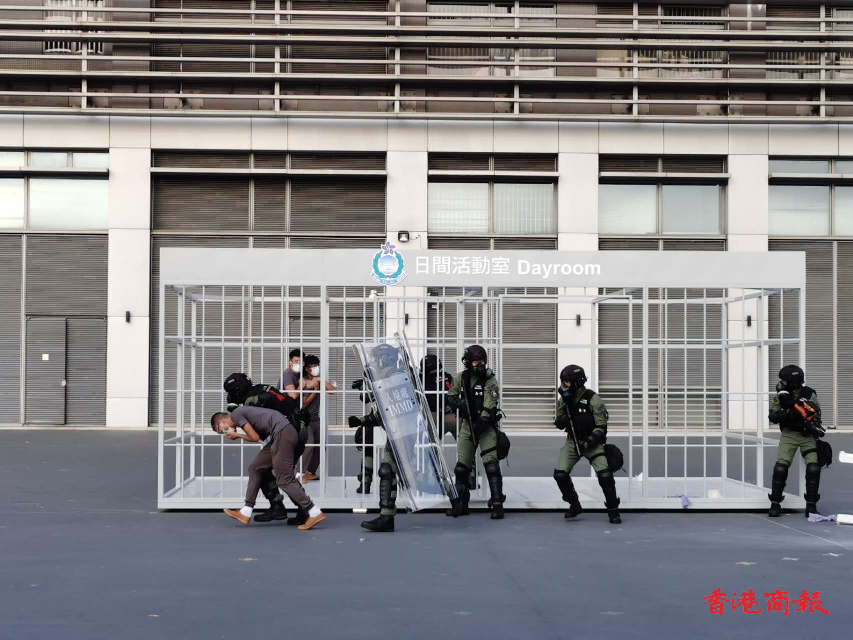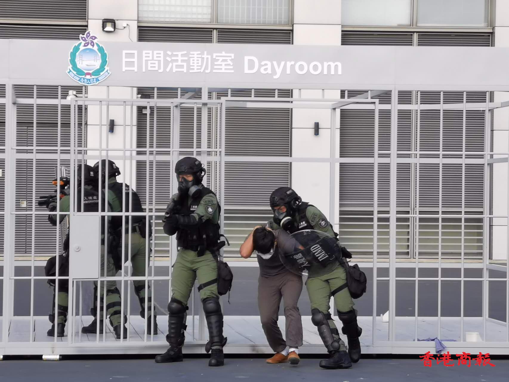 不過,最令人期待的是,入境處緊急應變隊的首次戰術演示,現場模擬應對羈留人士集體騷亂的情況,硝煙四起,十分逼真,這也是隊伍及其裝備首次在公眾面前亮相。