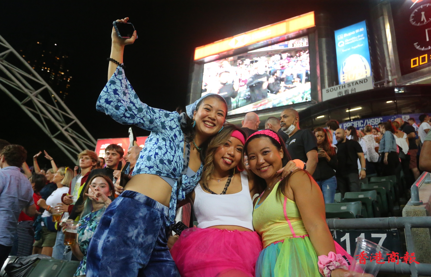 近日疫情稍為緩和,政府較早前放寬飲食限制,只見場內不少球迷都面帶笑容,一邊觀賞球場內激烈的戰情,同時又可以飲啤酒、食熱狗,大快朵頤,實在是一大樂事。以往南看台是一眾外國球迷夢寐以求的「世外桃源」,雖然今屆賽事主要以本地球迷為主,缺少了一大班舞者和醉客,但依然有球迷悉心打扮入場,娛人娛己。大會又特別安排音樂人現場演奏及高歌,好讓球迷們盡情享受,盡情狂歡。(記者 泇濬 攝影 志誠 )