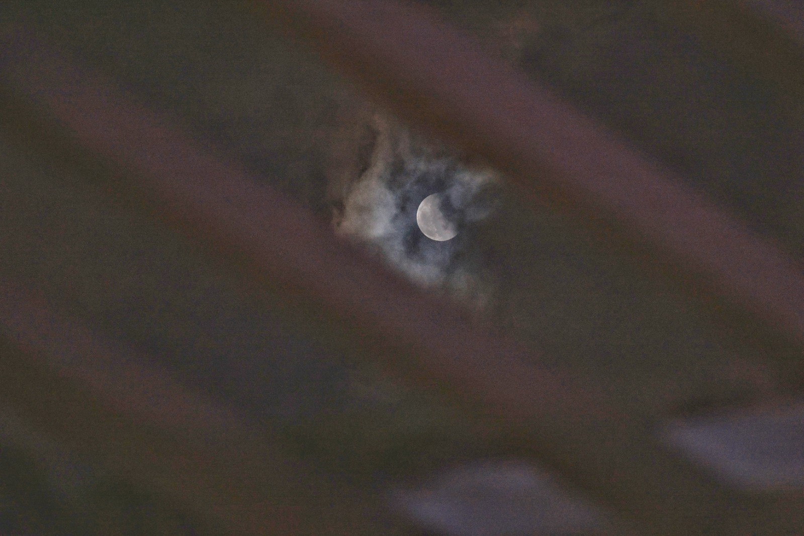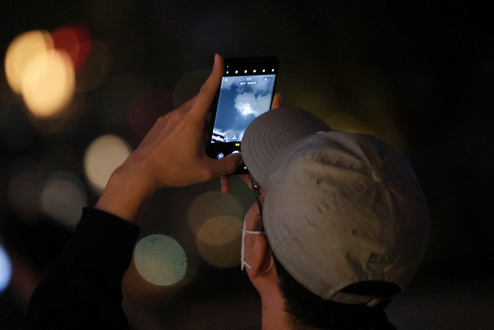 晚上8時半左右,月亮衝出雲層映入眼簾,雖已過月全食的時段,但市民依舊能清楚看見月亮復圓過程。(圖:中通社、中新社)