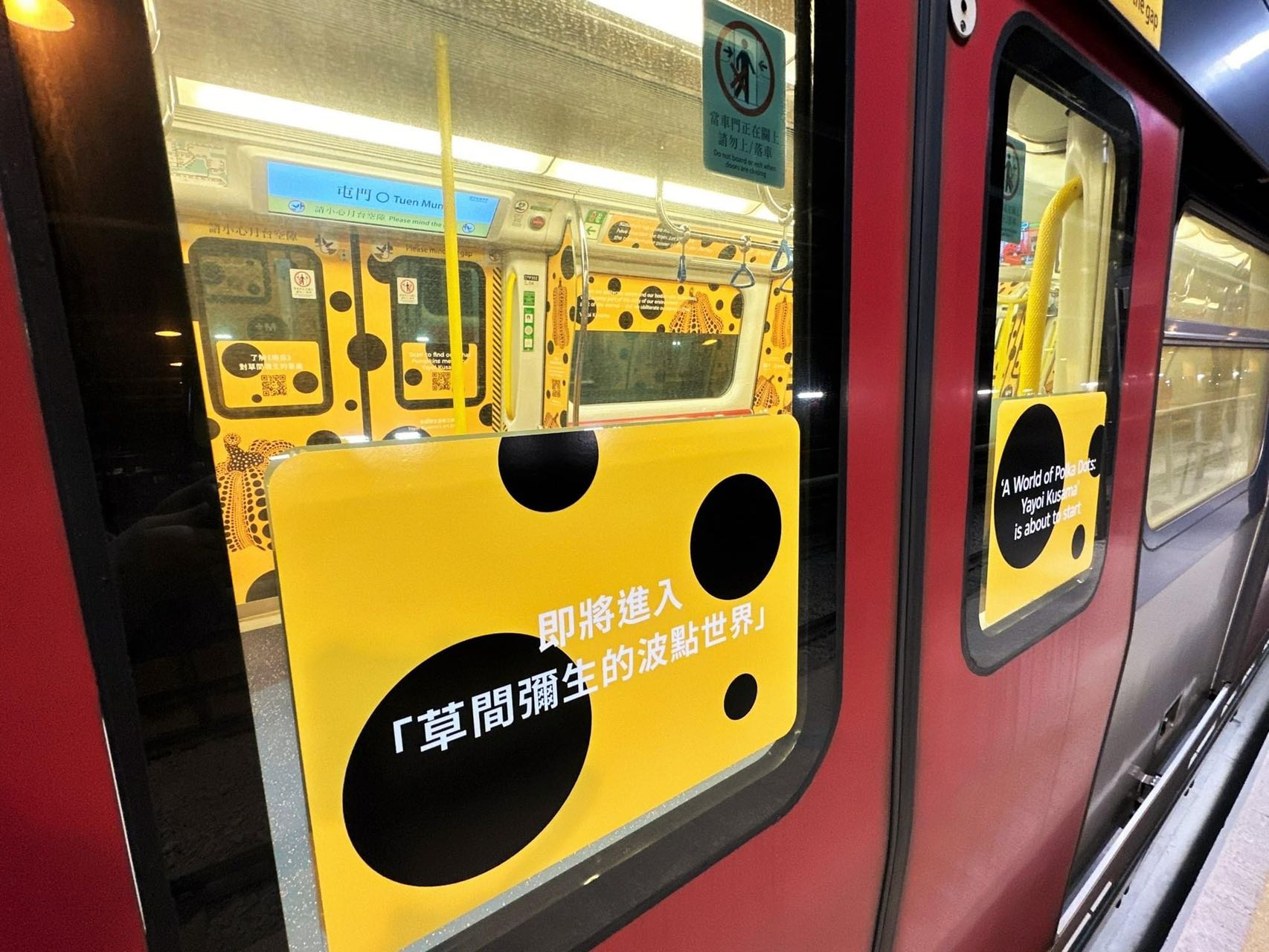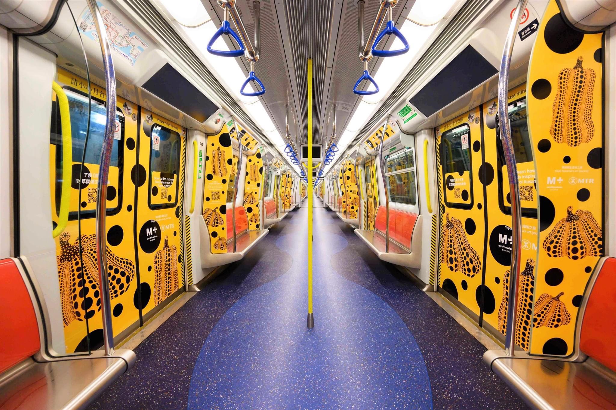 適逢M+舉辦特別展覽「草間彌生:一九四五年至今」,以草間彌生大型雕塑《南瓜》作為設計概念的列車登陸港鐵,該主題列車由11月9日起至12月27日於屯馬線行走。