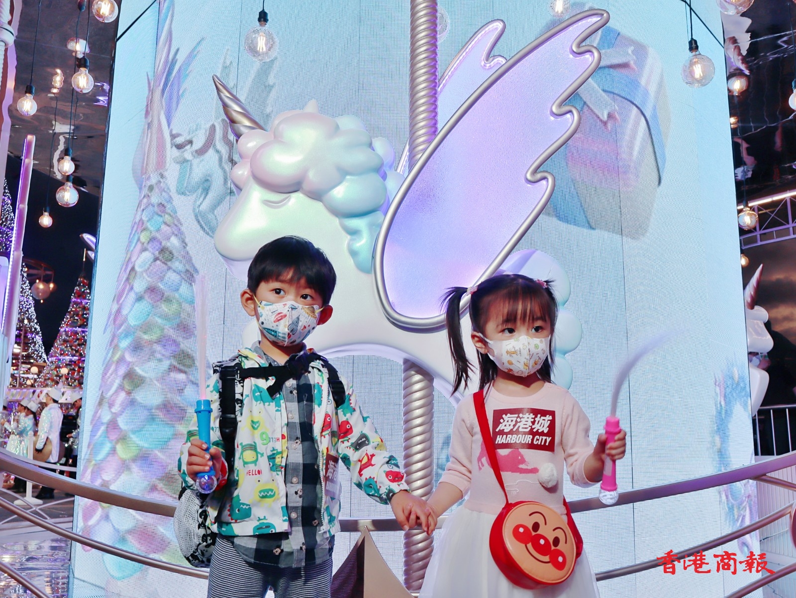 雖然還有個多月才到聖誕節,但香港不少商場已亮起聖誕燈飾,其中尖沙咀海港城以「旋轉獨角獸樂園」為主題的聖誕燈飾,今天(16日)傍晚舉行了亮燈儀式。四隻不同個性的獨角獸會將夢想世界帶到維港旁邊的海運大廈露天廣場, 帶領市民從10米高的聖誕樹進入「旋轉獨角獸樂園」,18隻獨角獸於六組不同設計的「獨角獸 Merry-Go-Round」及20棵幻彩聖誕樹之間遊走,市民可與獨角獸一同沉醉於閃閃發光的夢幻仙景之中,成為市民節日打卡景點。(馮瀚文攝)