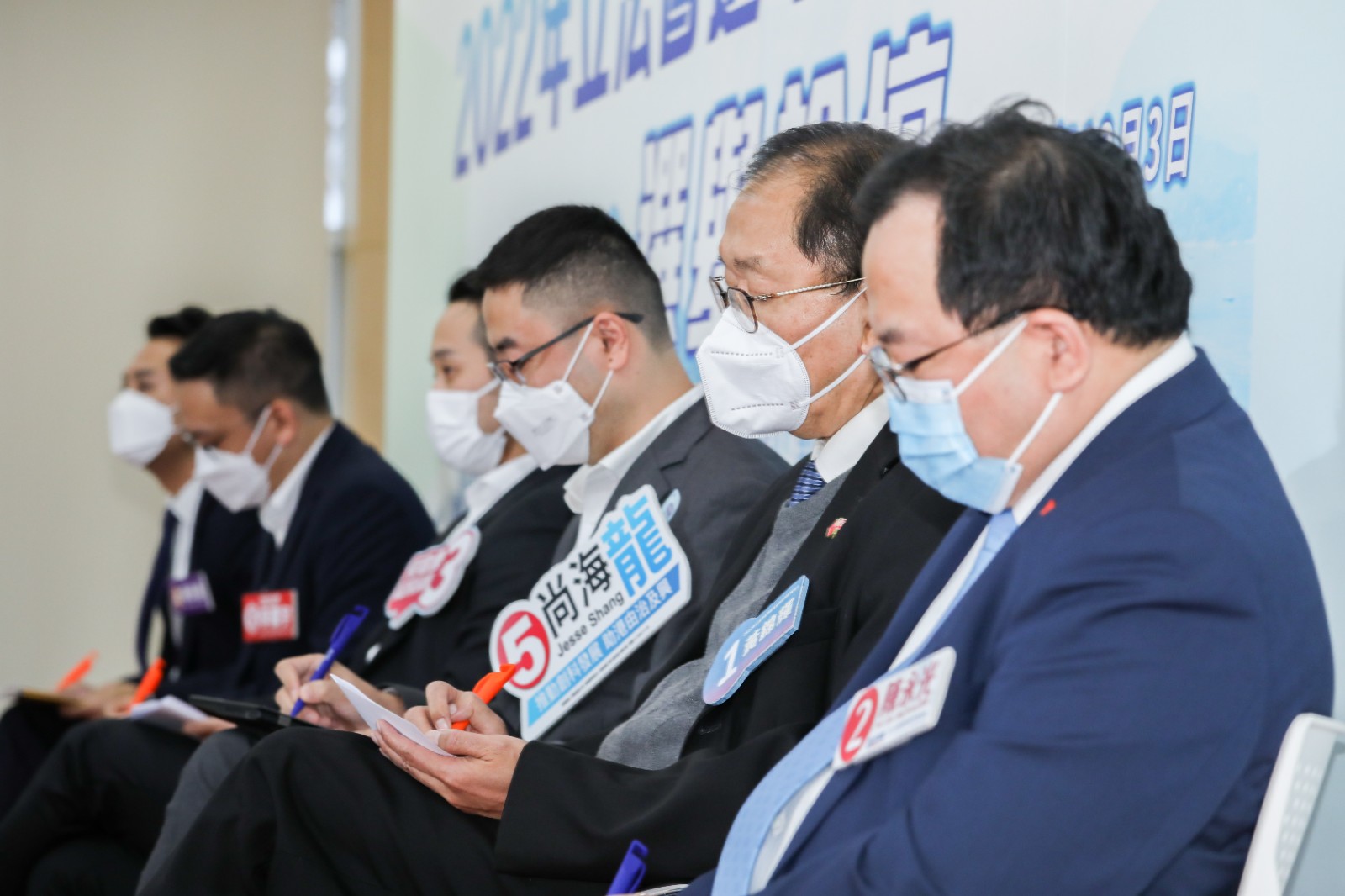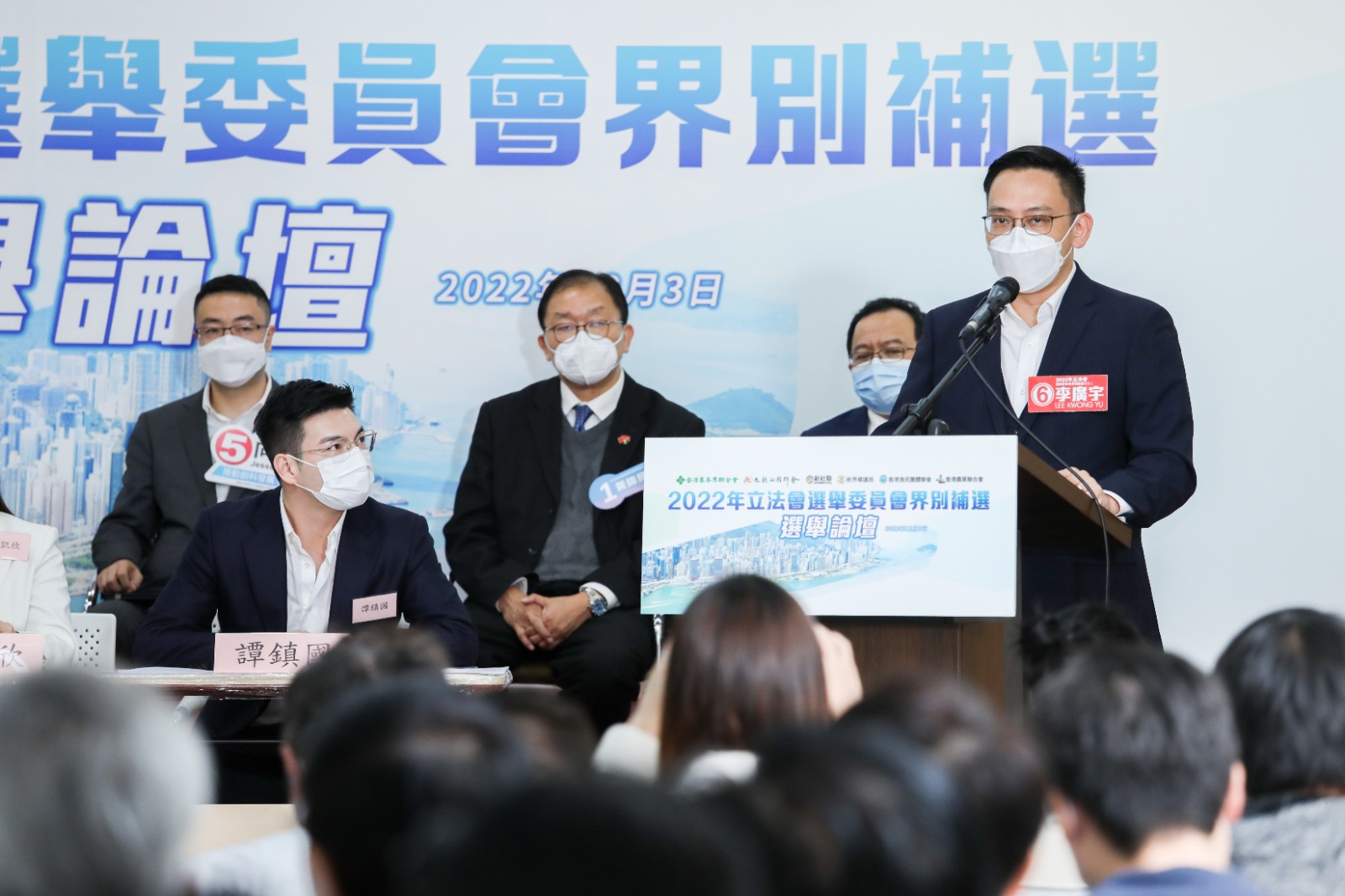 出席候選人包括:1號黃錦輝、2號陳永光、3號何敬康、4號黃梓謙、5號尚海龍、6號李廣宇。