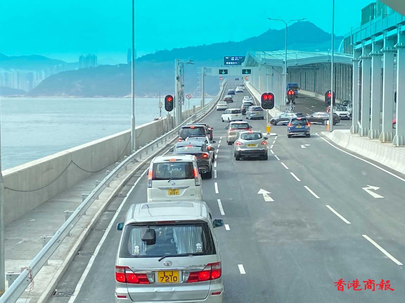 今早約7時20分已陸續有車到日出康城一端的跨灣大橋入口等候,也有行人和踩單車人士等候上橋「爭飲頭啖湯」,踏入八時正多架警方電單車及一輛工程車開路,帶領車龍起步。行人路和單車徑部分,很多是一家大細前來參觀,橋上人頭湧湧「打卡」,單車徑起步位置由於太多單車,有人「炒車」受傷,要出動救護員協助。