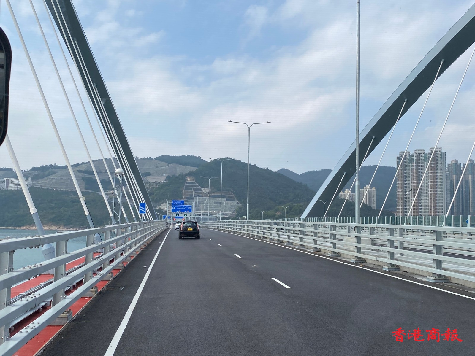 將軍澳藍田隧道及將軍澳跨灣大橋今日(11日)早上8時正式通車,跨灣大橋成為全港首條三合一海上高架橋,同時具備行車道、單車徑和行人路。首日即有大批市民前來散步和踩單車「打卡」,也有很多私家車司機專程前來試新路,九巴明日起加開三條行駛新路的線路,由日出康城至觀塘最快可省20分鐘。