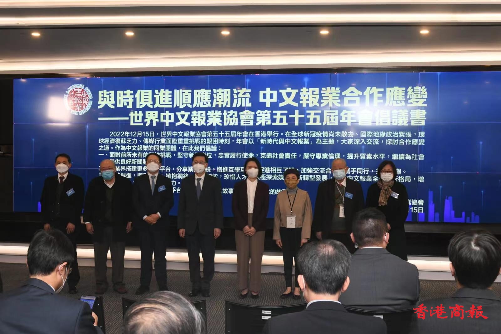 世界中文報業協會今日(15日)舉辦第55屆年會,來自11個國家和地區的近50位中文報業代表線上線下參加會議共同探討「新時代與中文報業」。李家超就中文報業在數碼時代該如何轉型和創新分享了看法,指提供優質新聞和深入評論,仍是中文報業必須鞏固的獨特優勢。他呼籲全球中文報業都和香港攜手說好香港故事。另外,他還提到特區政府將於內地有關部門保持聯繫,穩妥有序地推動香港與內地正常通關。