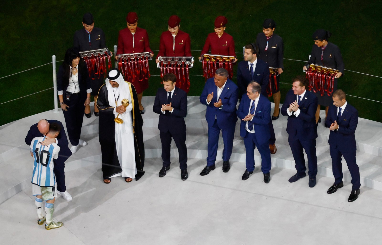 美斯亦繼2014年後,第2度奪得世盃金球獎,正是史上第1人,還記得8年前,阿根廷屈居亞軍,美斯領完金球奬後,凝視大力神盃的一幕,令世人難忘。8年後的今天,再奪金球獎的美斯,終於可將大力神盃「據為己有」,只見他領過金球獎後,便急不及待偷步上前親吻大力神盃,正好彌補了8年前的遺憾。