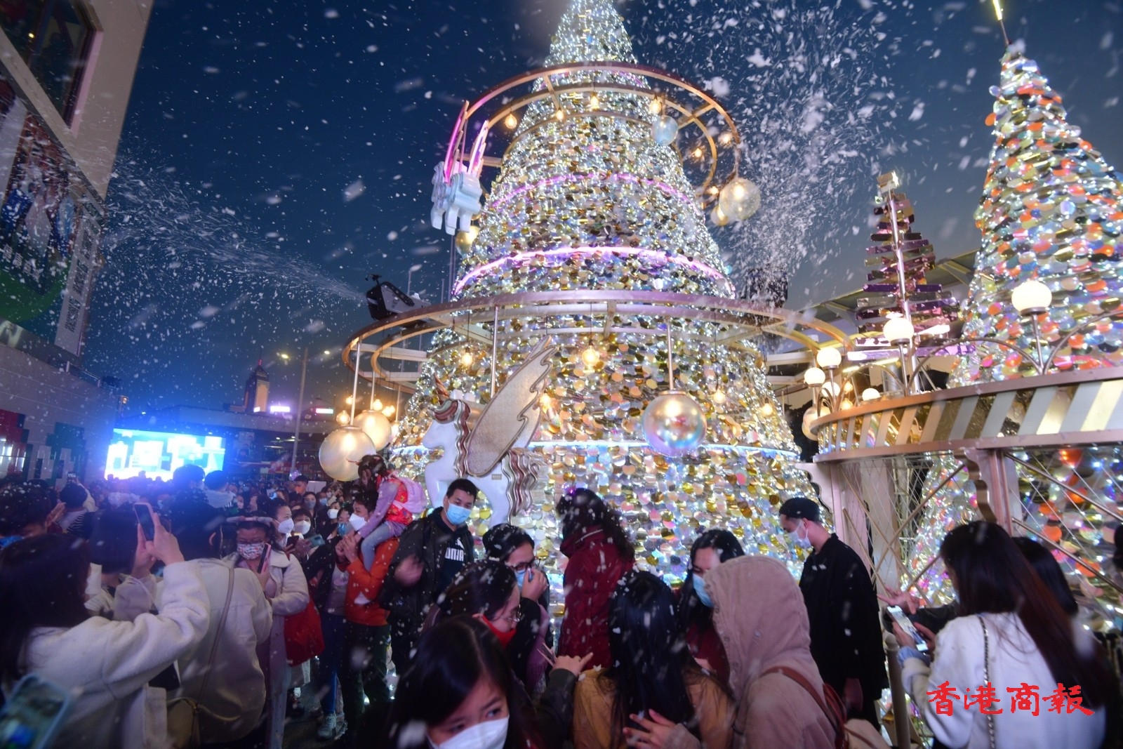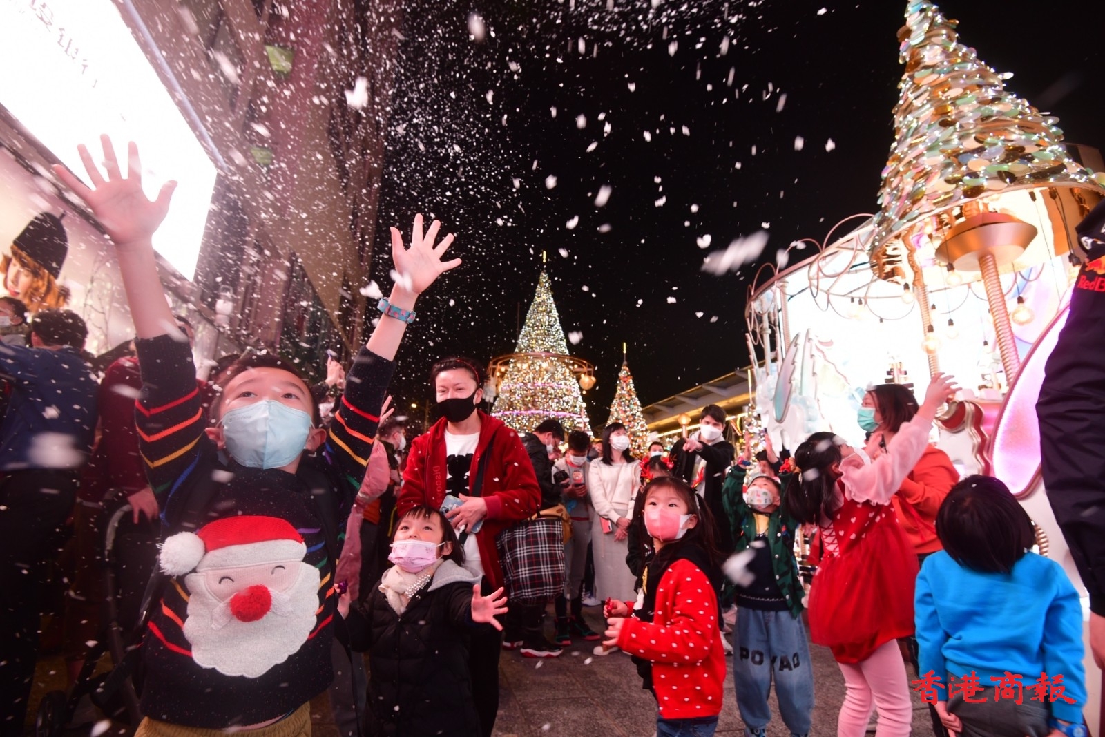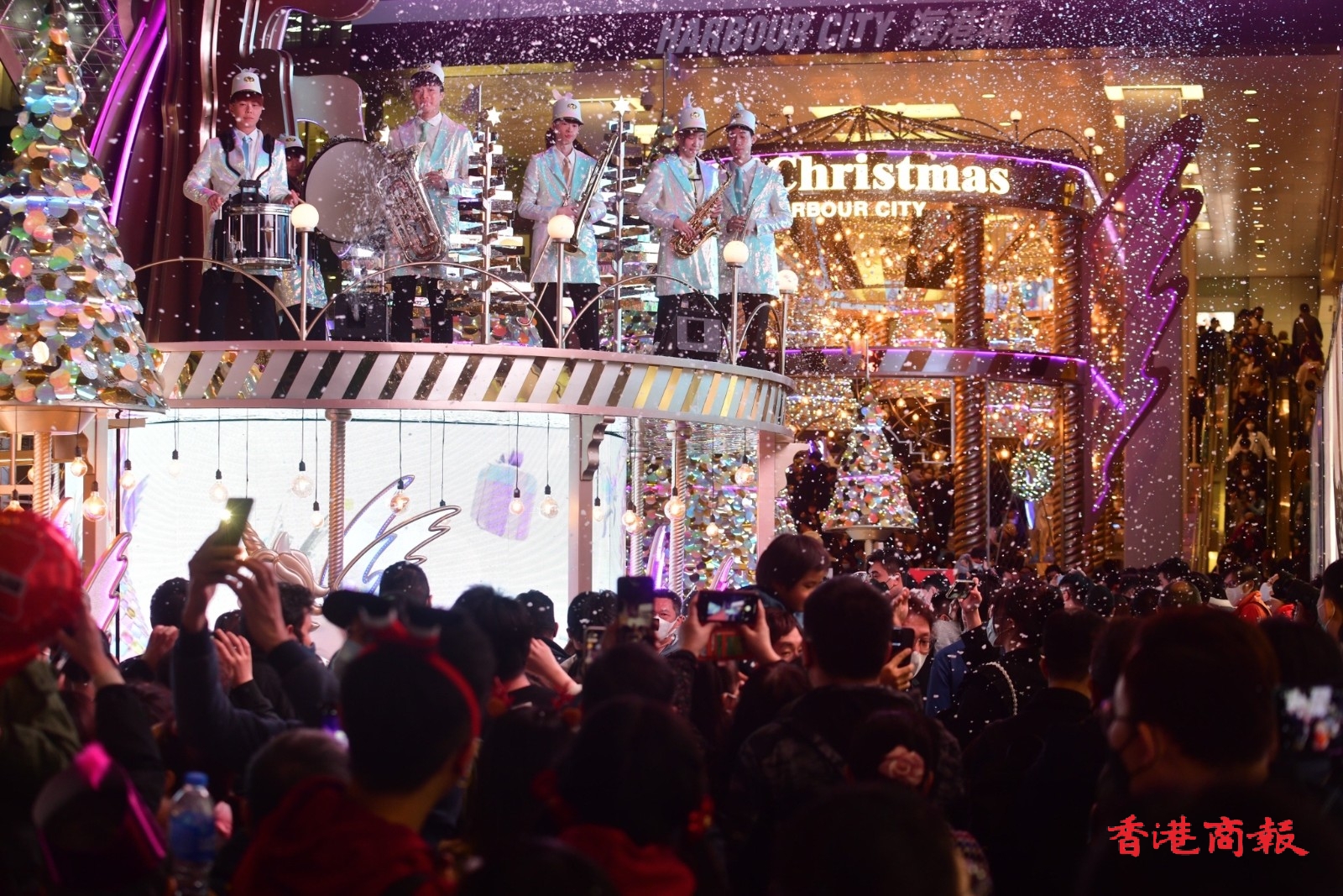 海港城邀請演奏隊進行音樂表演,加上飄雪效果,與市民歡度聖誕。