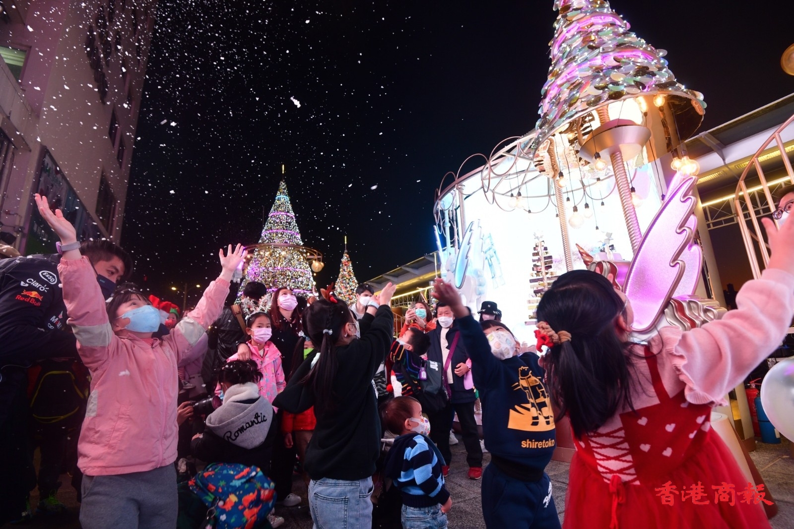 海港城邀請演奏隊進行音樂表演,加上飄雪效果,小朋友很享受。
