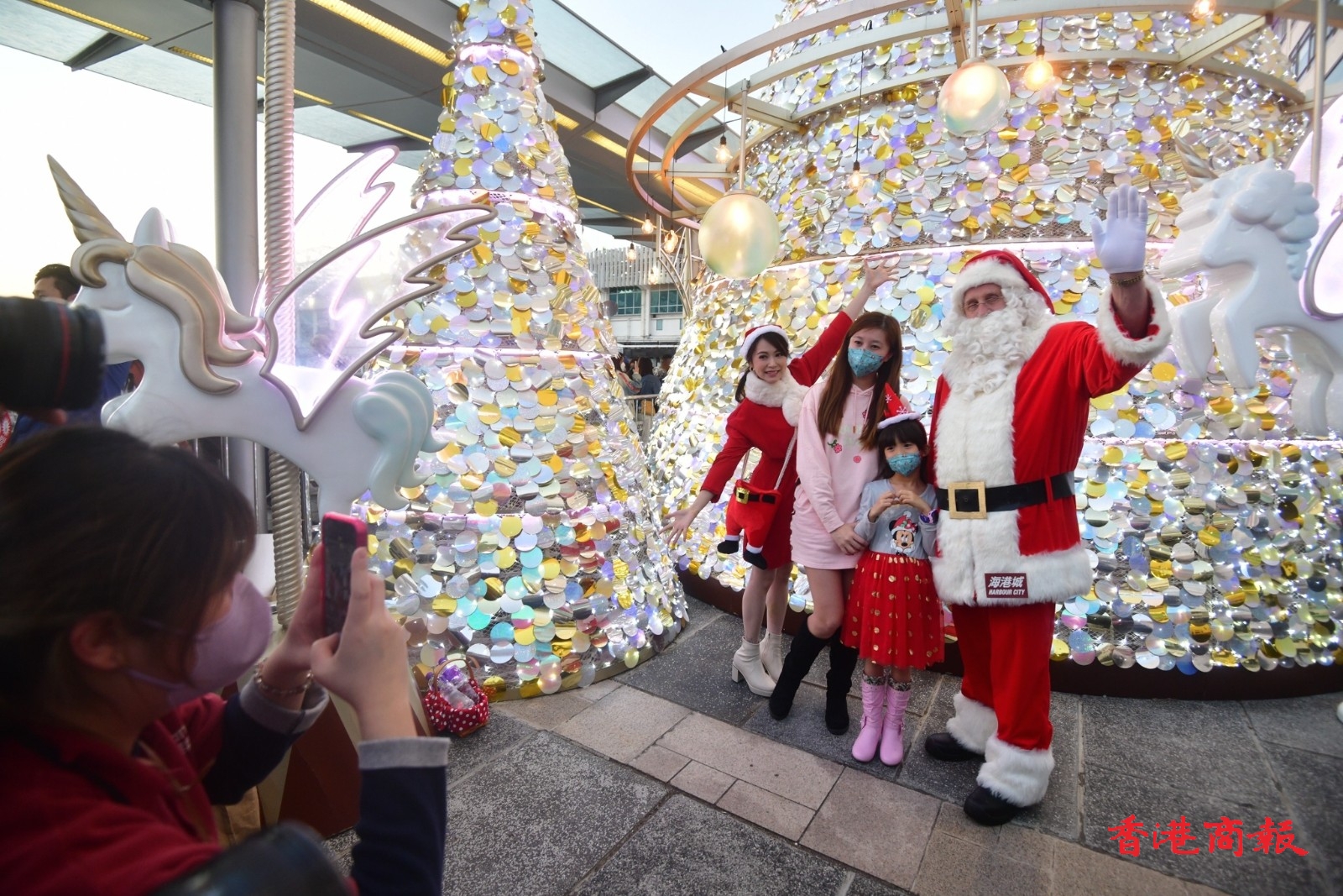 市民陳小姐帶同小朋友一起與聖誕老人合照,她今年打算花費3000元購買聖誕禮物和外出用餐,而最近疫情放緩下都有考慮出外旅遊。