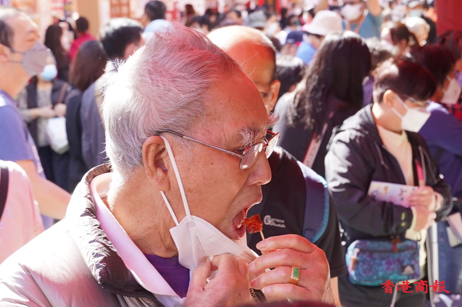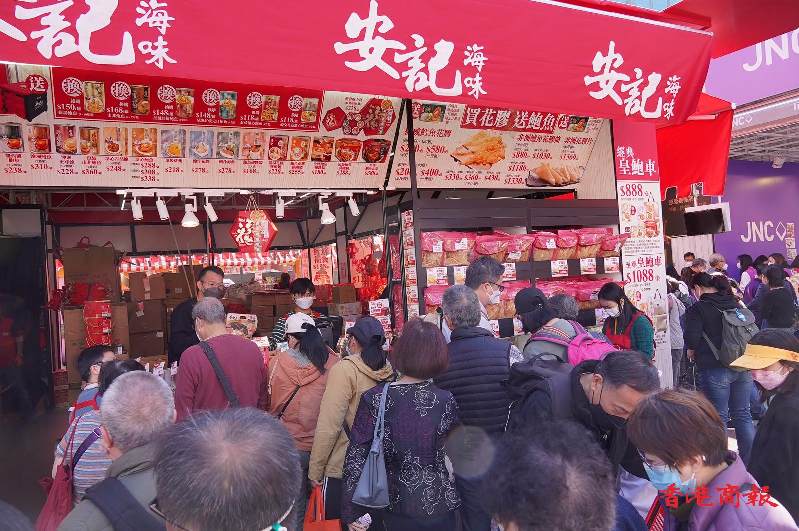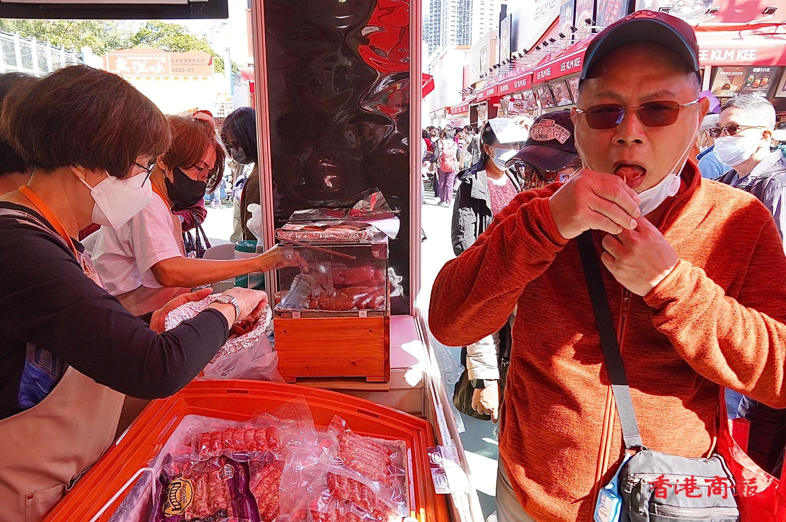 榮華臘腸推廣部鄭小姐表示,公司認為安全至上,遂無重啟試食,只和往年一樣現場煮熱黑醋薑以香味吸引人流,今年氣氛和人流都達到疫前水平,但市民購買力和疫前仍有差別。