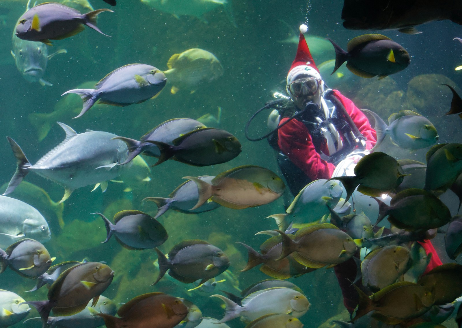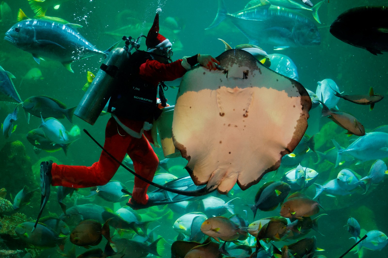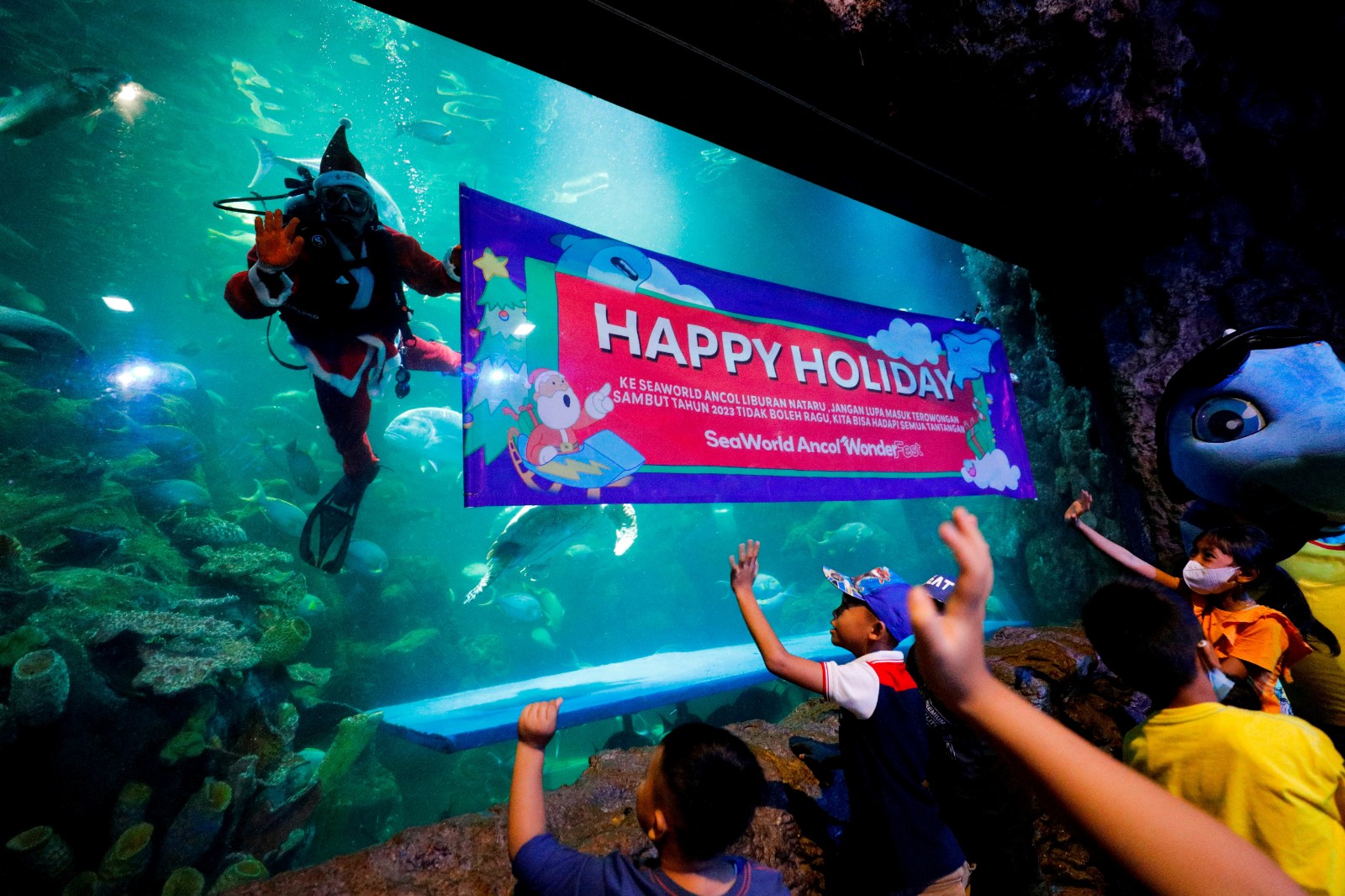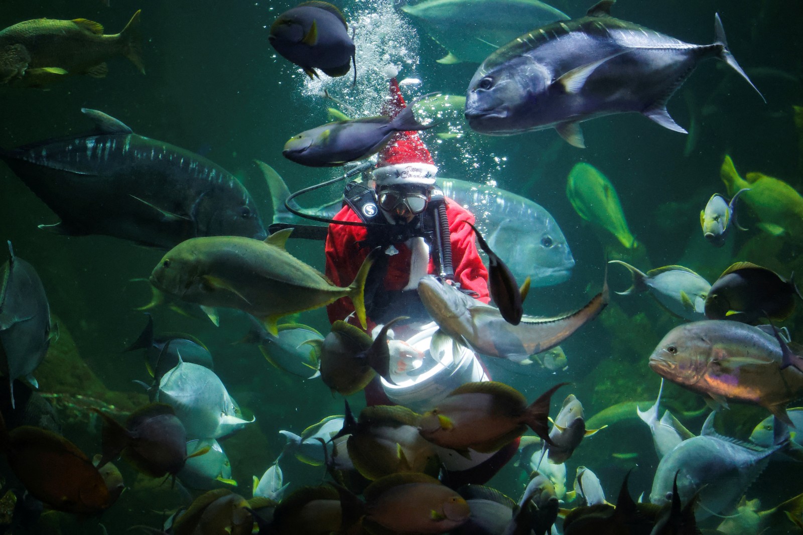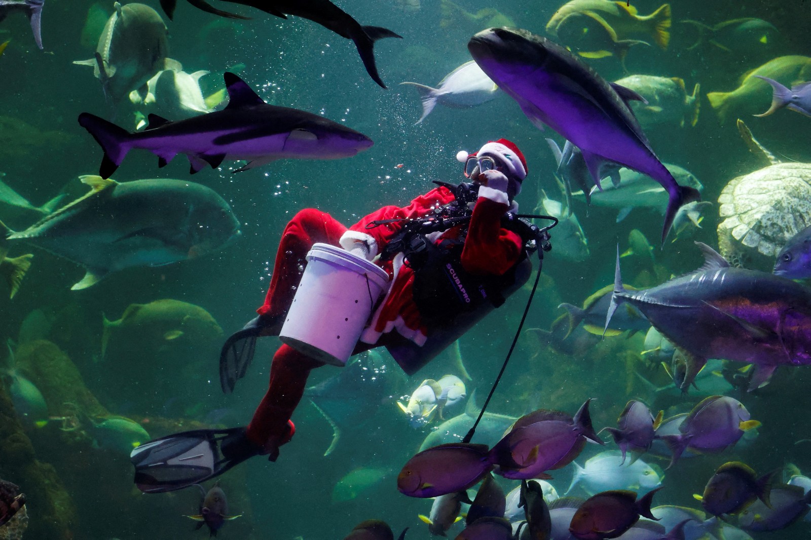 圖集|印尼水族館賀聖誕 聖誕老人水中派禮物