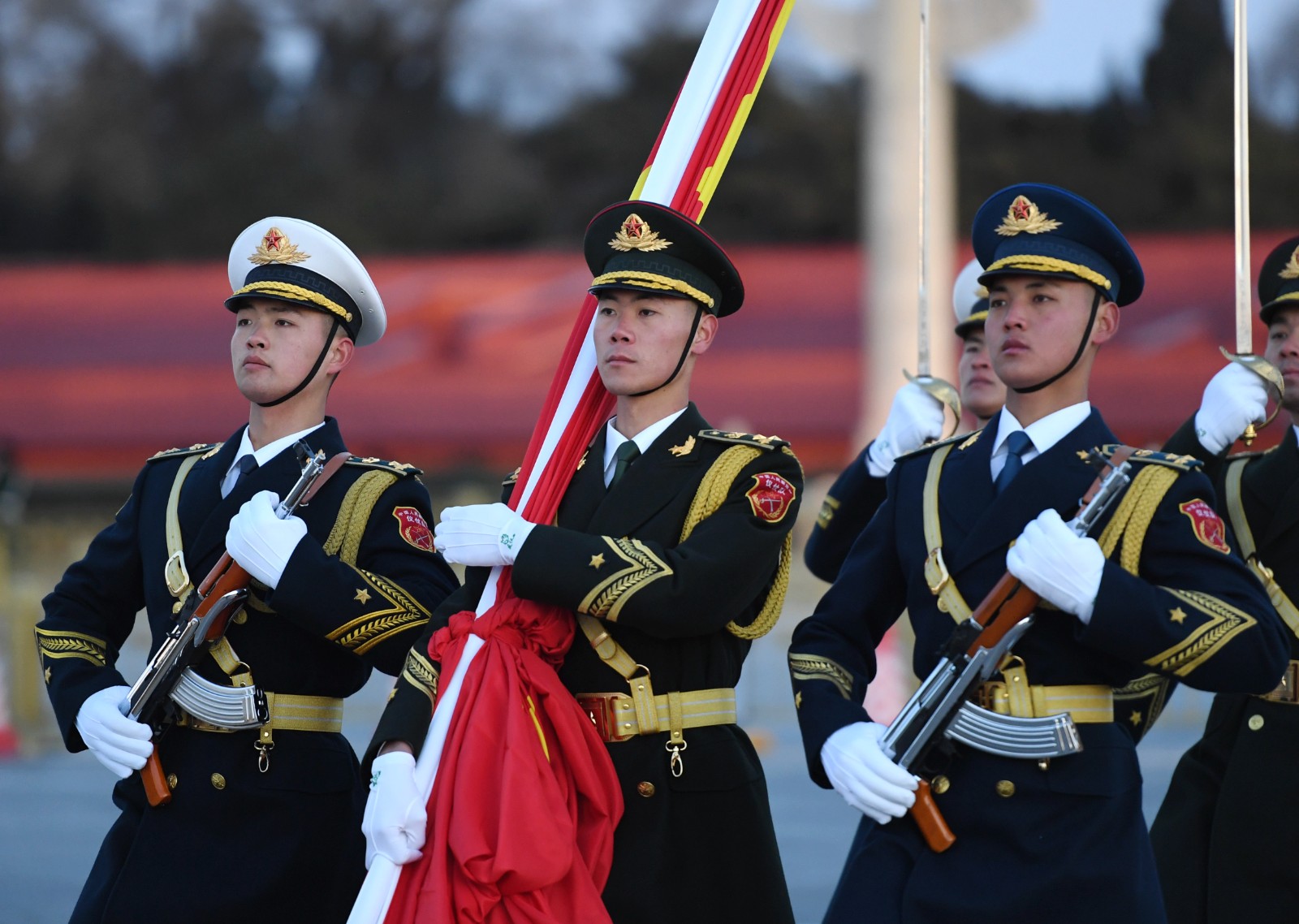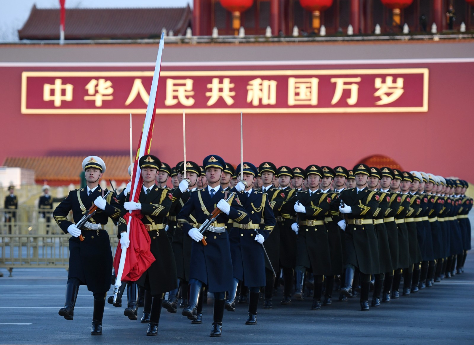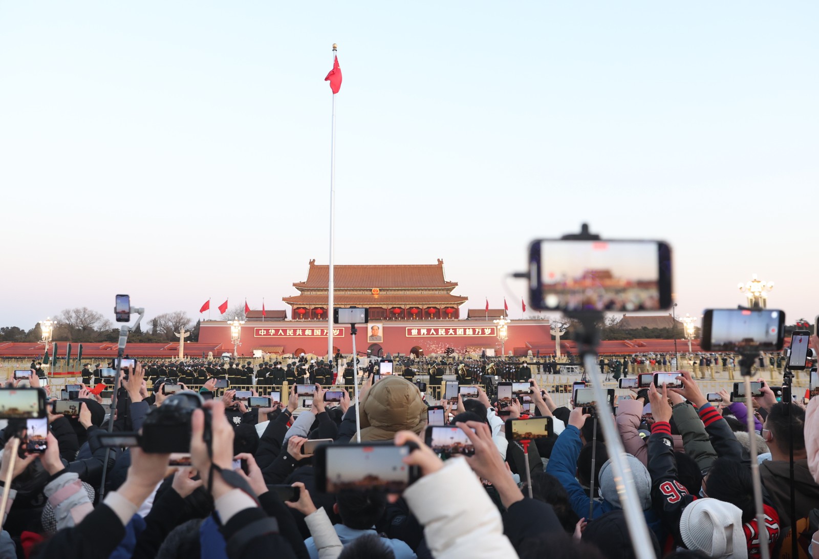 1月1日晨,北京天安門廣場舉行隆重的升國旗儀式。(
