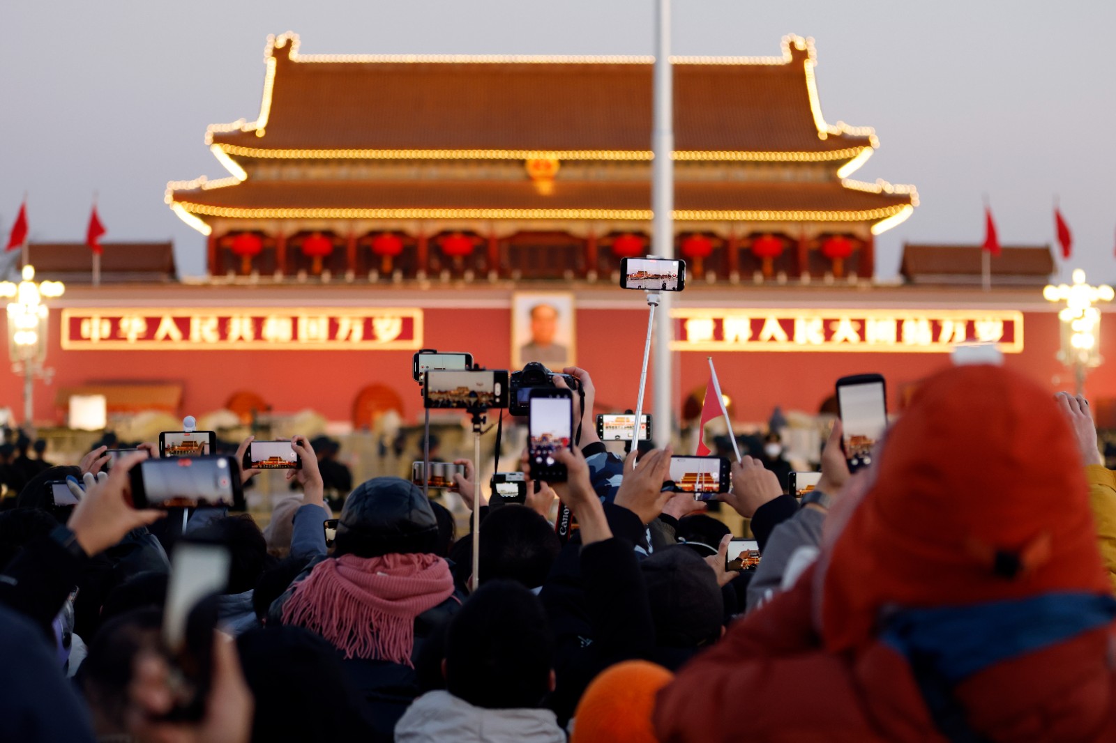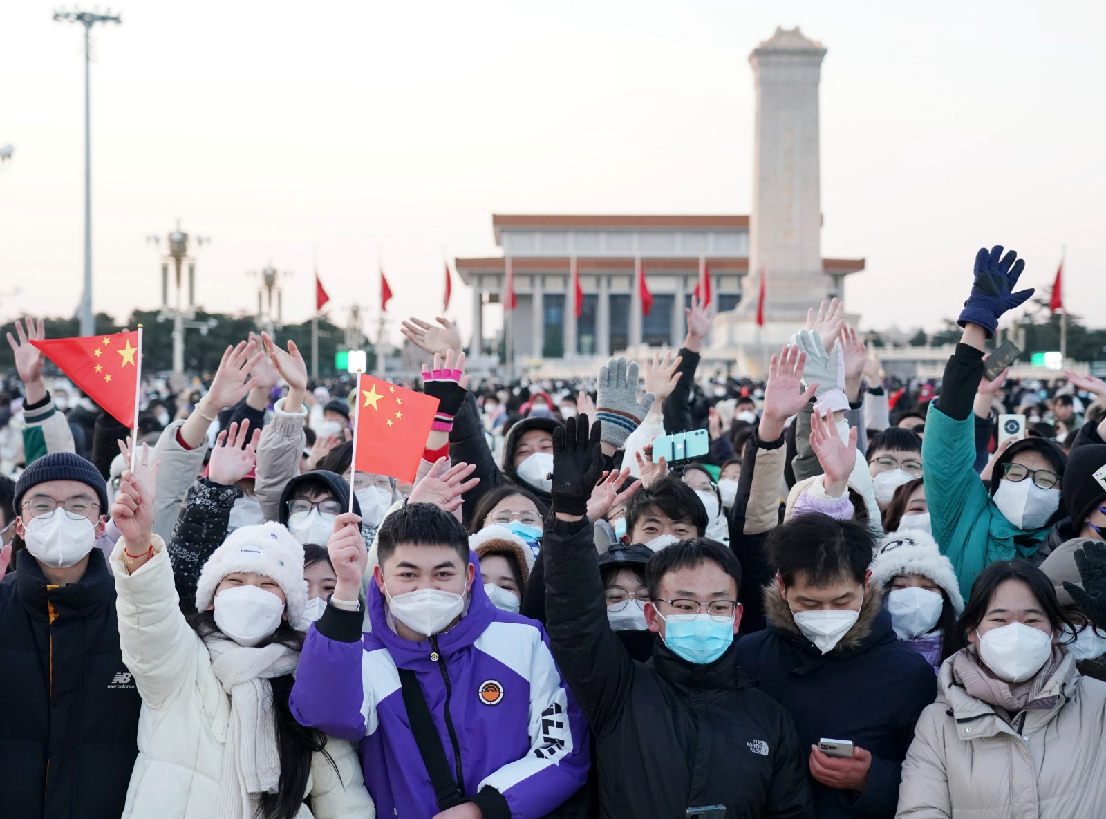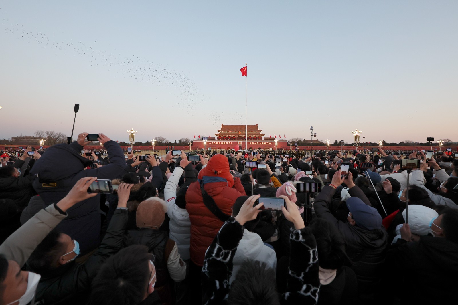 1月1日晨,北京天安門廣場舉行隆重的升國旗儀式。(