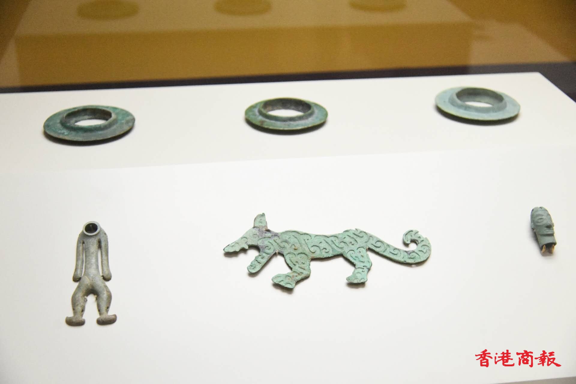 由香港文物探知館舉辦的「金沙之光─古蜀文明展」於去年12月開始展出,是香港發展局與國家文物局於上月簽訂《關於深化文化遺產領域交流與合作的框架協議書》後的首項展覽,場內展出逾70件由四川成都金沙和廣漢三星堆遺址出土的珍貴國家文物,包括祭祀用品及兵器。其中更有14件一級國家文物,包括金人面像和蛙形金箔等,市民可免費入場參觀。(記者 蔡啟文攝)