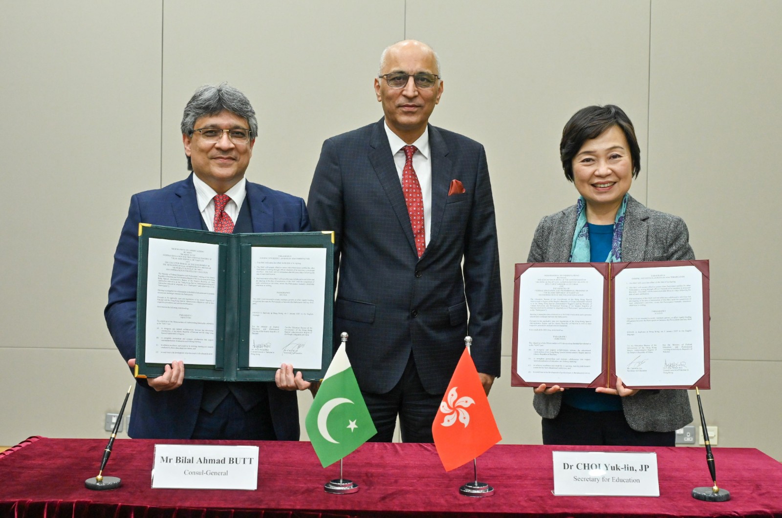 備忘錄由教育局局長蔡若蓮與巴基斯坦駐港總領事Bilal Ahmad Butt代表簽署,並由正訪港的巴基斯坦駐華大使Moin ul Haque見證。