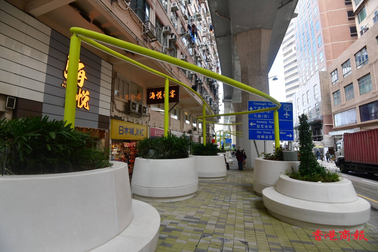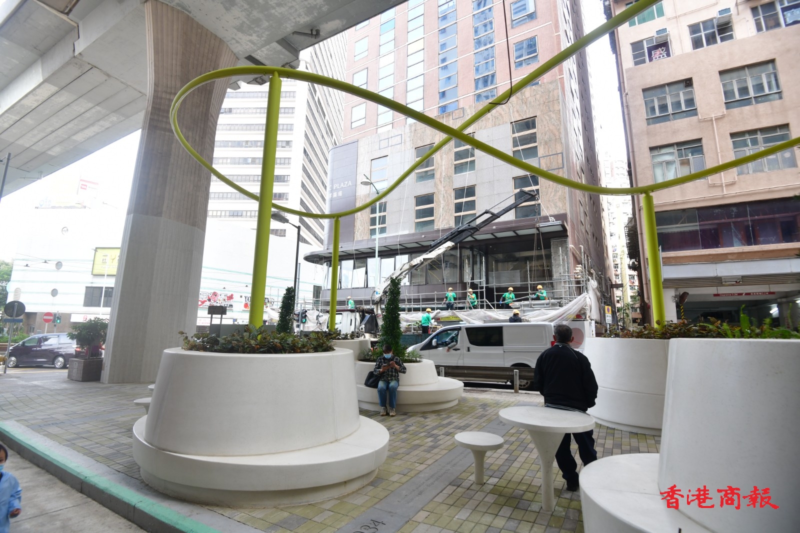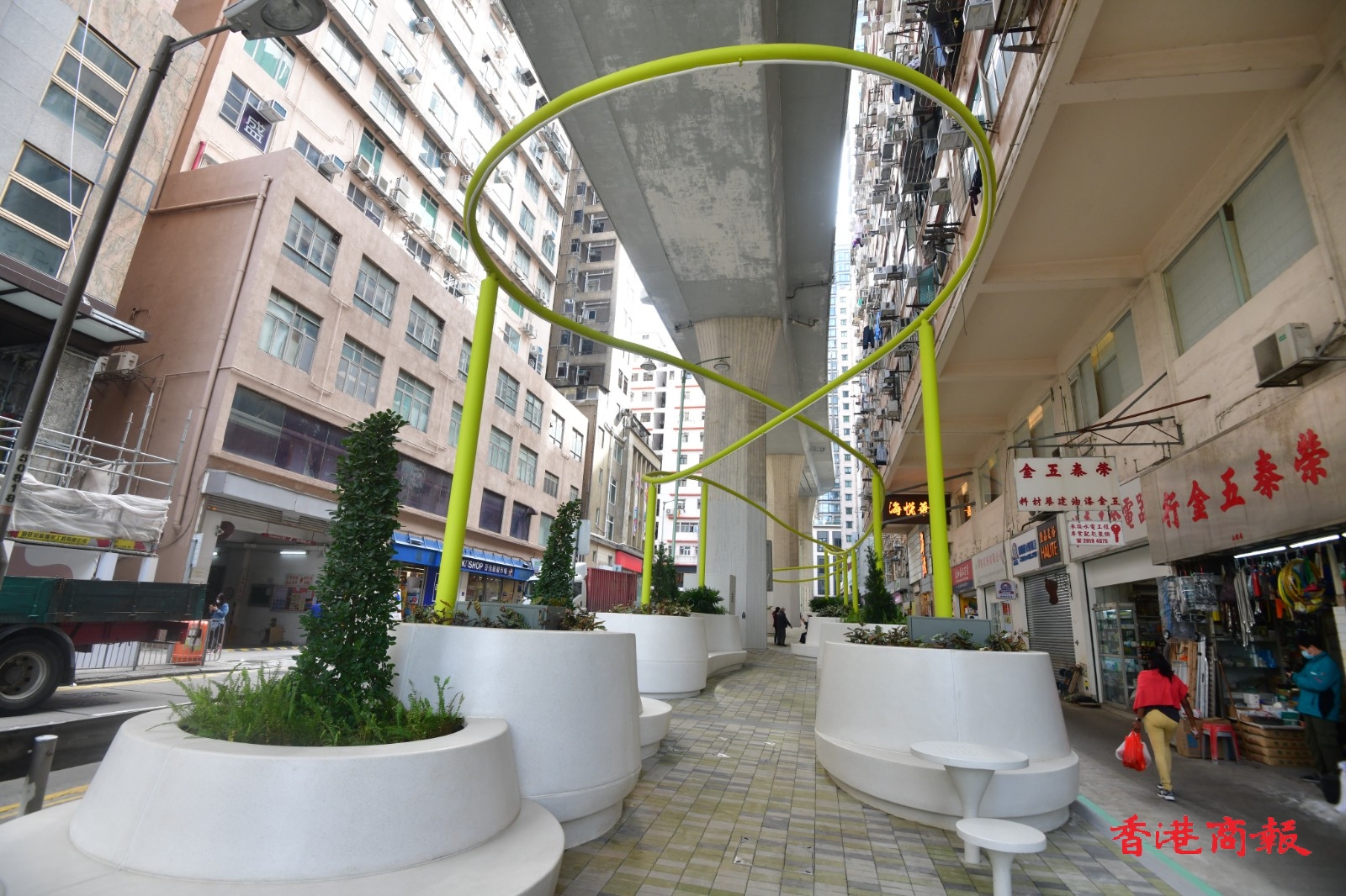 近年來,特區政府翻新多區的天橋底,令區內煥然一新。其中,中西區山道天橋休憩處近月已變身為全新的公共空間。山道天橋橋樑有四、五層樓高,經翻新後融合玩樂的概念,配合天橋沿斜坡而建的特色,增設了動感燈光裝置。