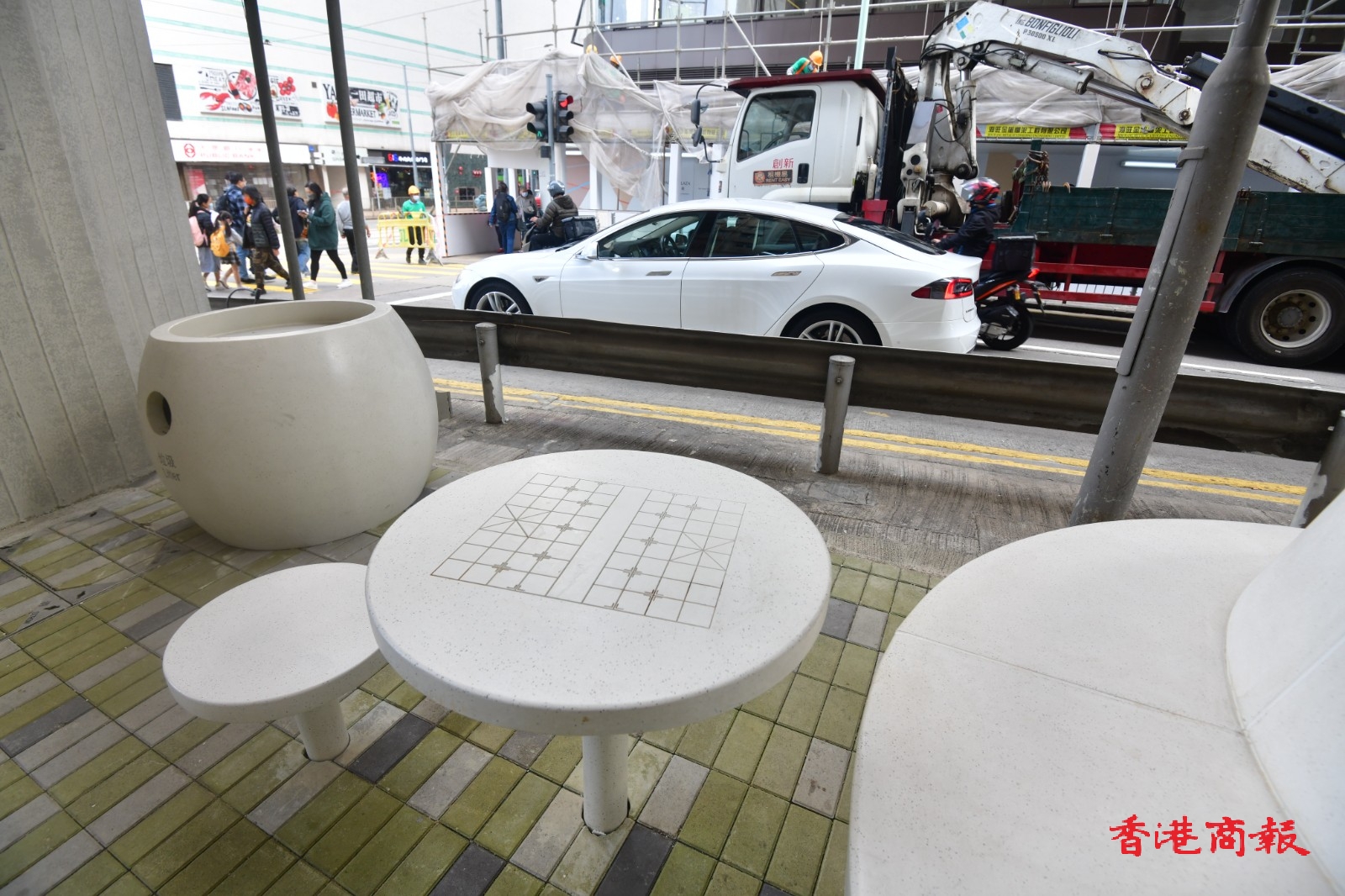 休憇處內亦新增有座椅、特色象棋桌,滲入了中西區的歴史元素,在新舊元素交融下,山道天橋予人感覺亦舊亦新,成為社區中一個巧妙的休憇處。(記者 崔俊良攝)