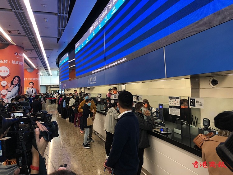 西九龍站今日(12日)下午2時起提供現場售票,港鐵職員安排市民有序進入站內購票,站外排隊人數已超過200人。