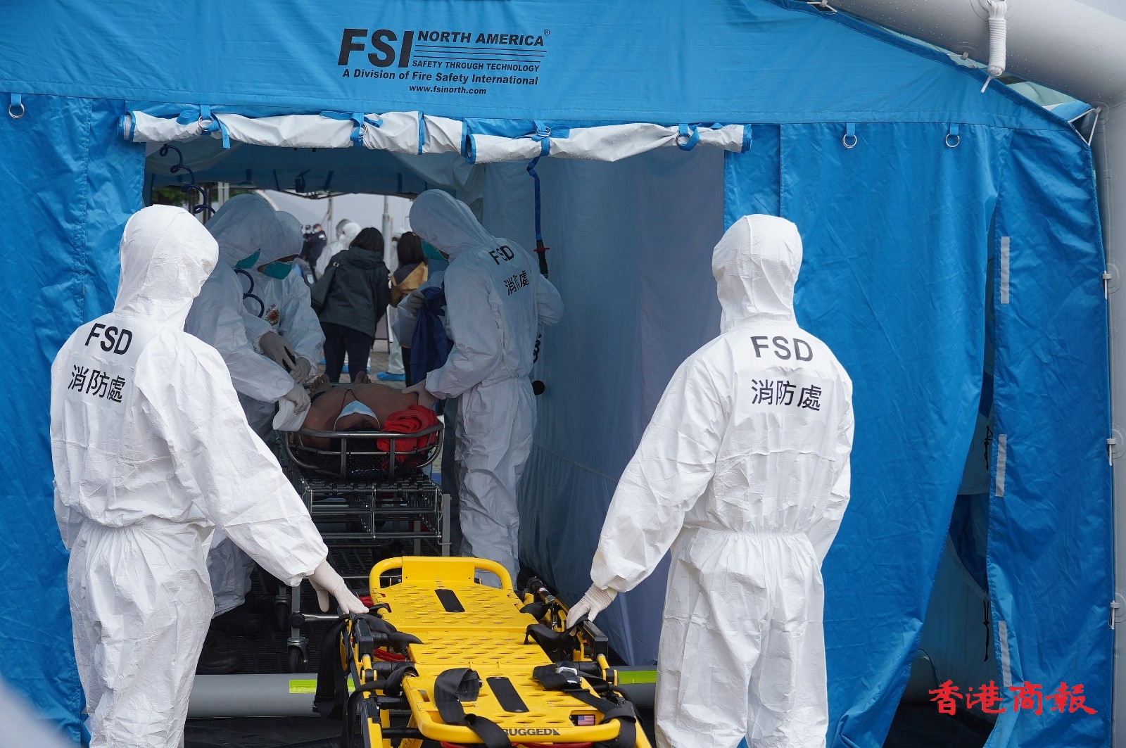 演習人士均模擬穿上防生化保護衣物。記者 馮俊文攝