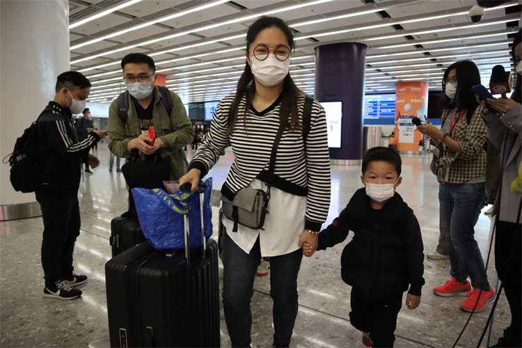 首批離港旅客余太太带着兩位小朋友返廣東雲浮過年,她心情非常興奮:「三年沒回去了,三年沒見到親人了,此行是带着孩子回家過年。」其中12歲的哥哥對記者說已經迫不及待約了內地的小夥伴玩耍,很開心,弟弟也對着鏡頭比「耶」!
