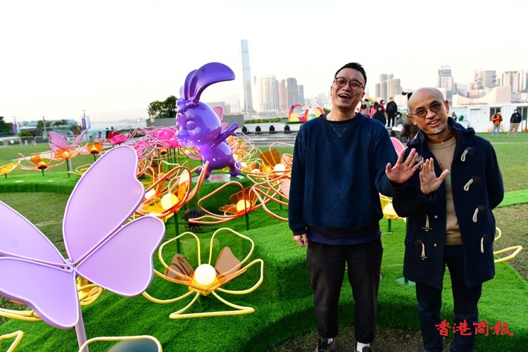 「兔躍香港迎新春」賀年互動裝置設計師鄭耀佳和創意總監王玉沛合照。