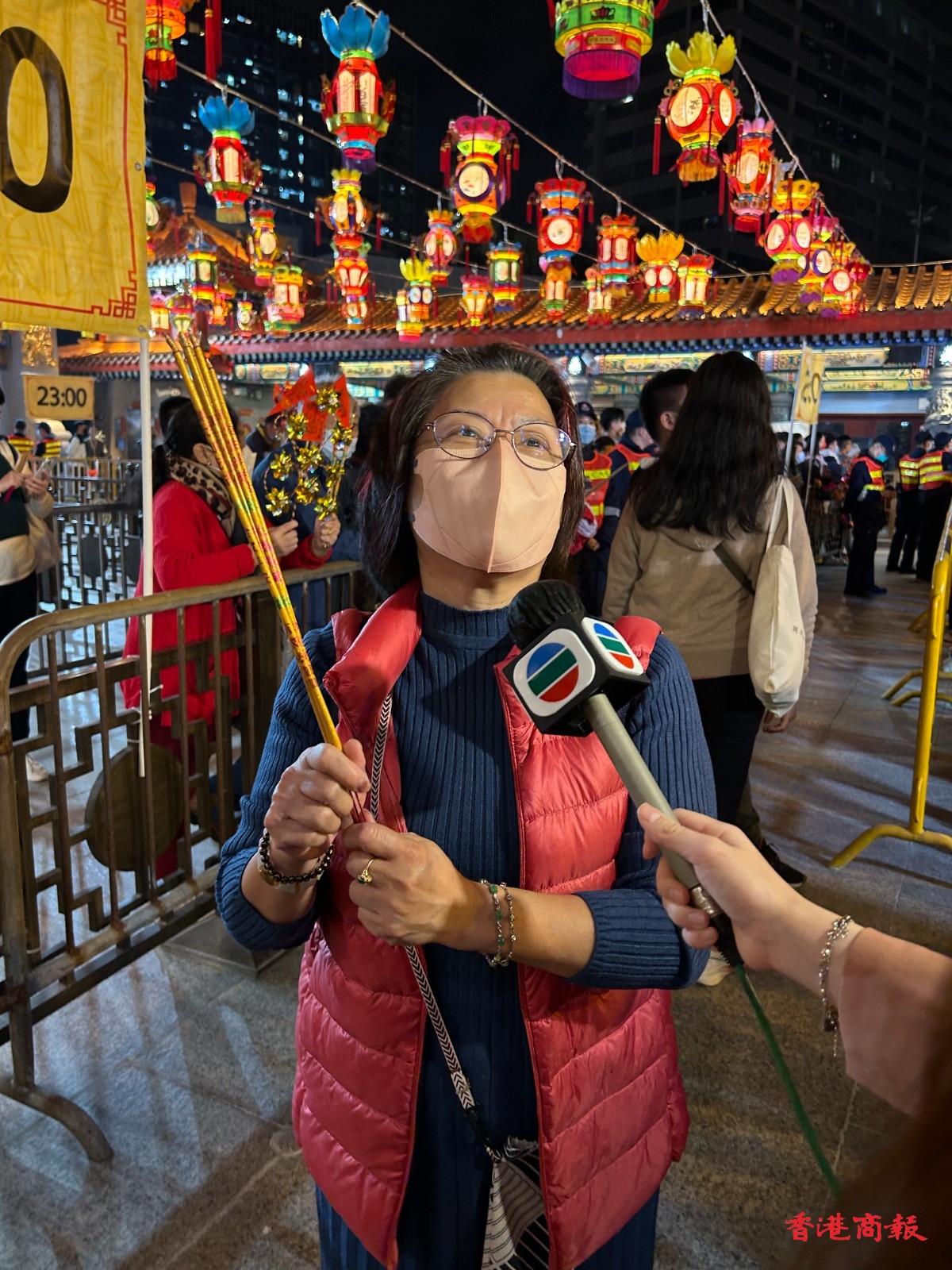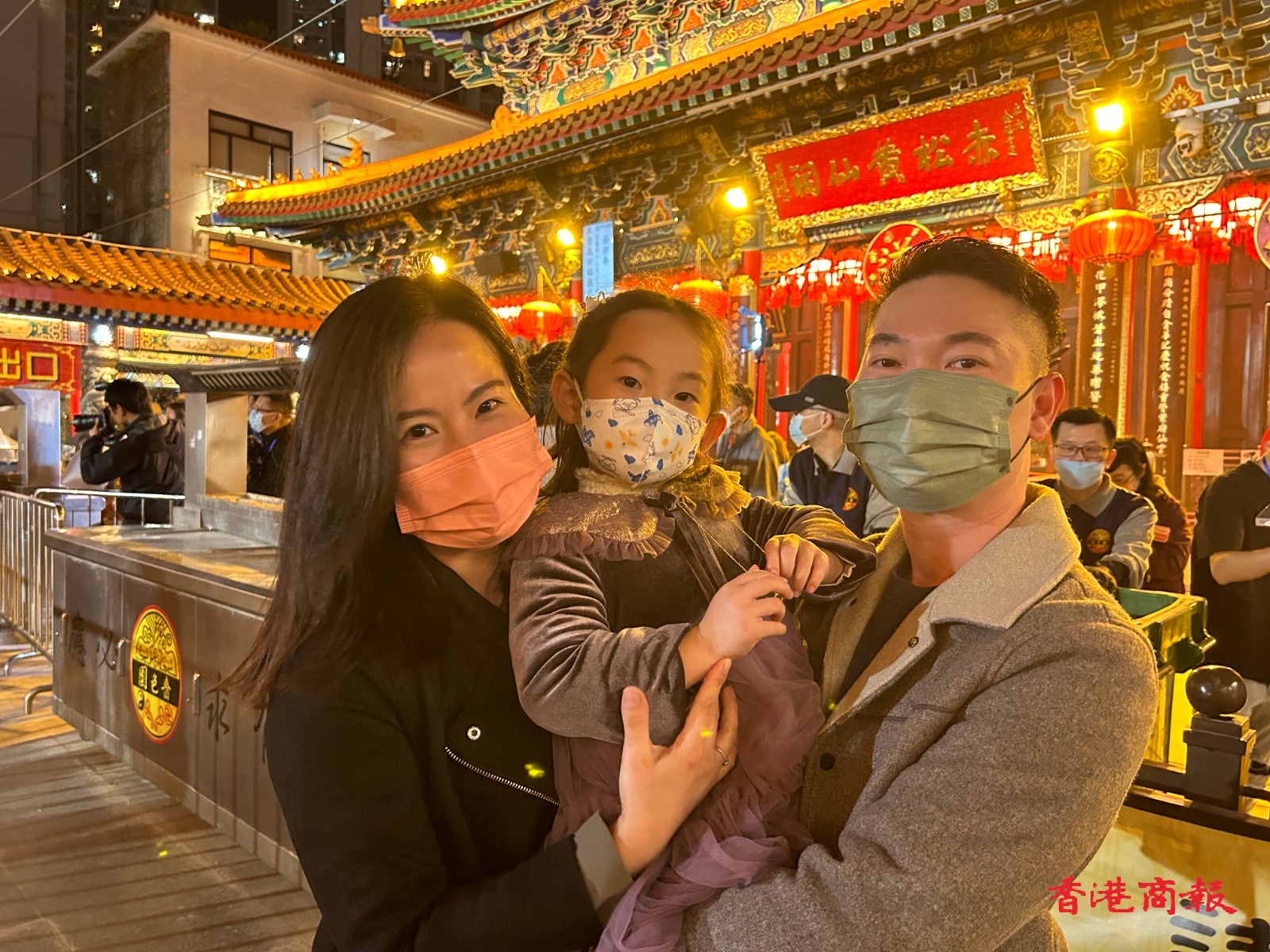 從事電子行業的馬先生帶同家人前來上頭注香,馬太太稱,過去幾年疫情,及封關大大影響先生的生意,希望疫情過後,及恢復通關,生意可以回復正軌。他們又指,今年是第一次在香港過年,以往都是在鄉下汕尾過年,認為在香港過年也很有氣氛。三歲的女兒說,疫情完結可以正常上學很開心,希望自己快高長大。